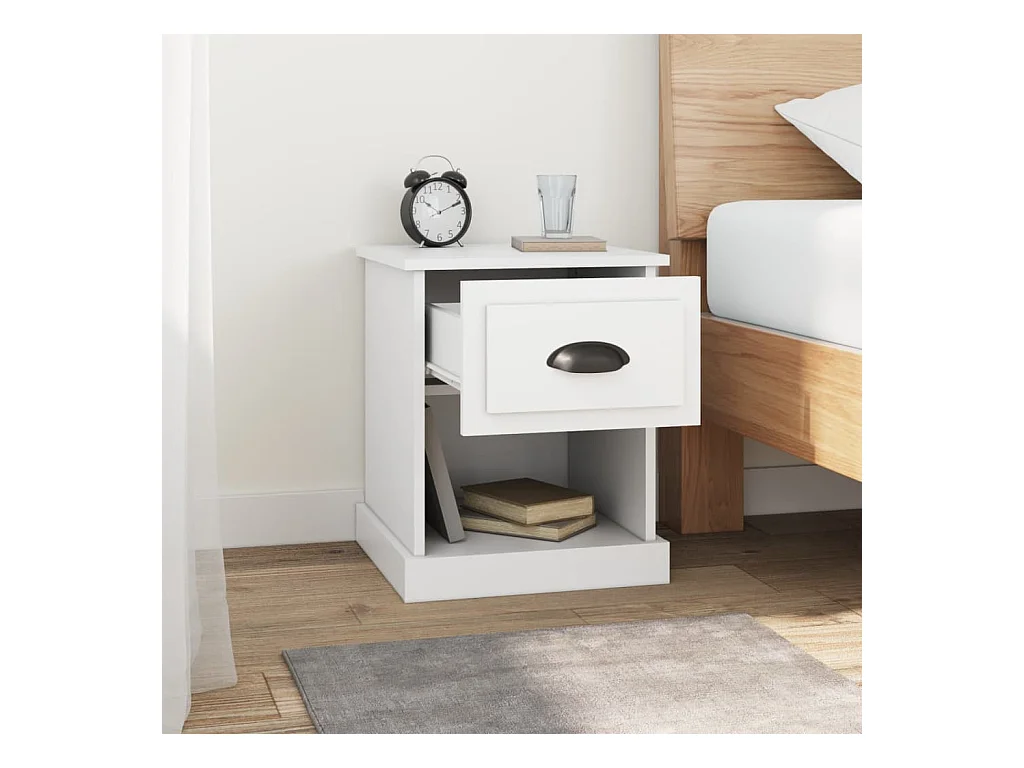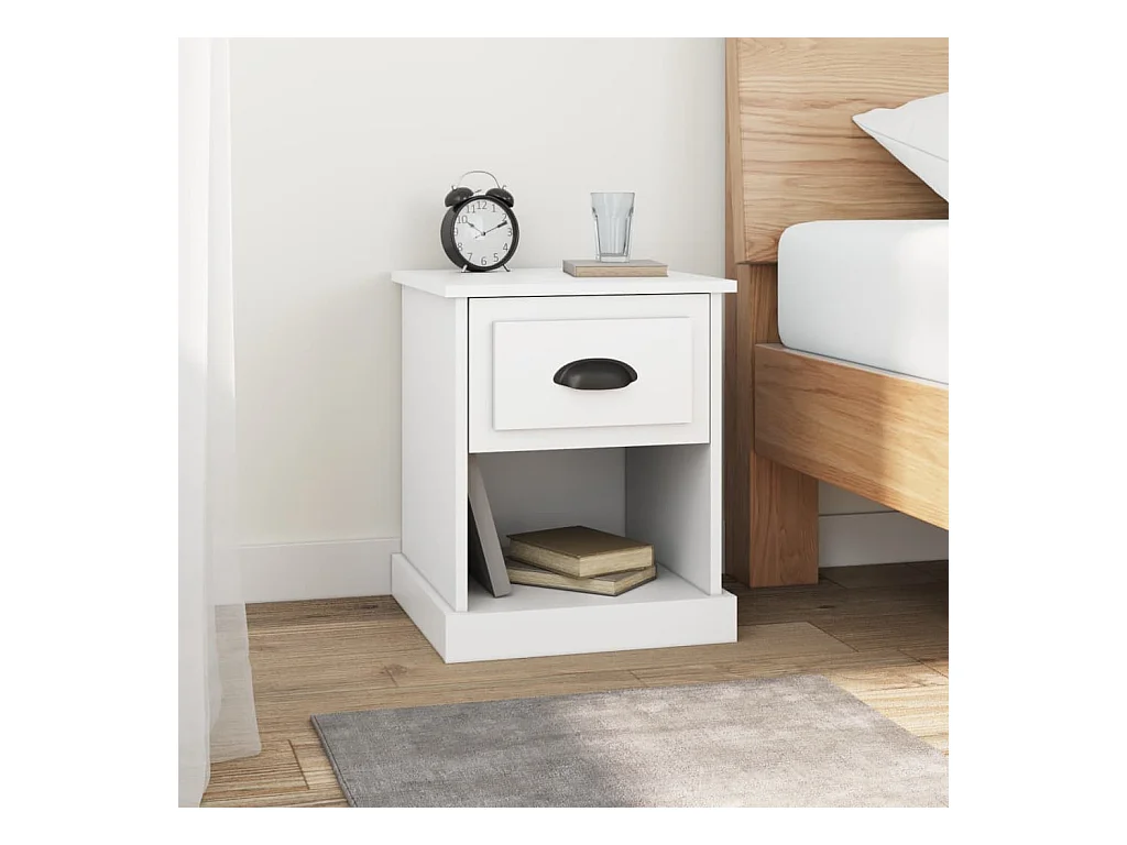 Mesa de cabeceira derivados de madeira branco brilhante PT19871