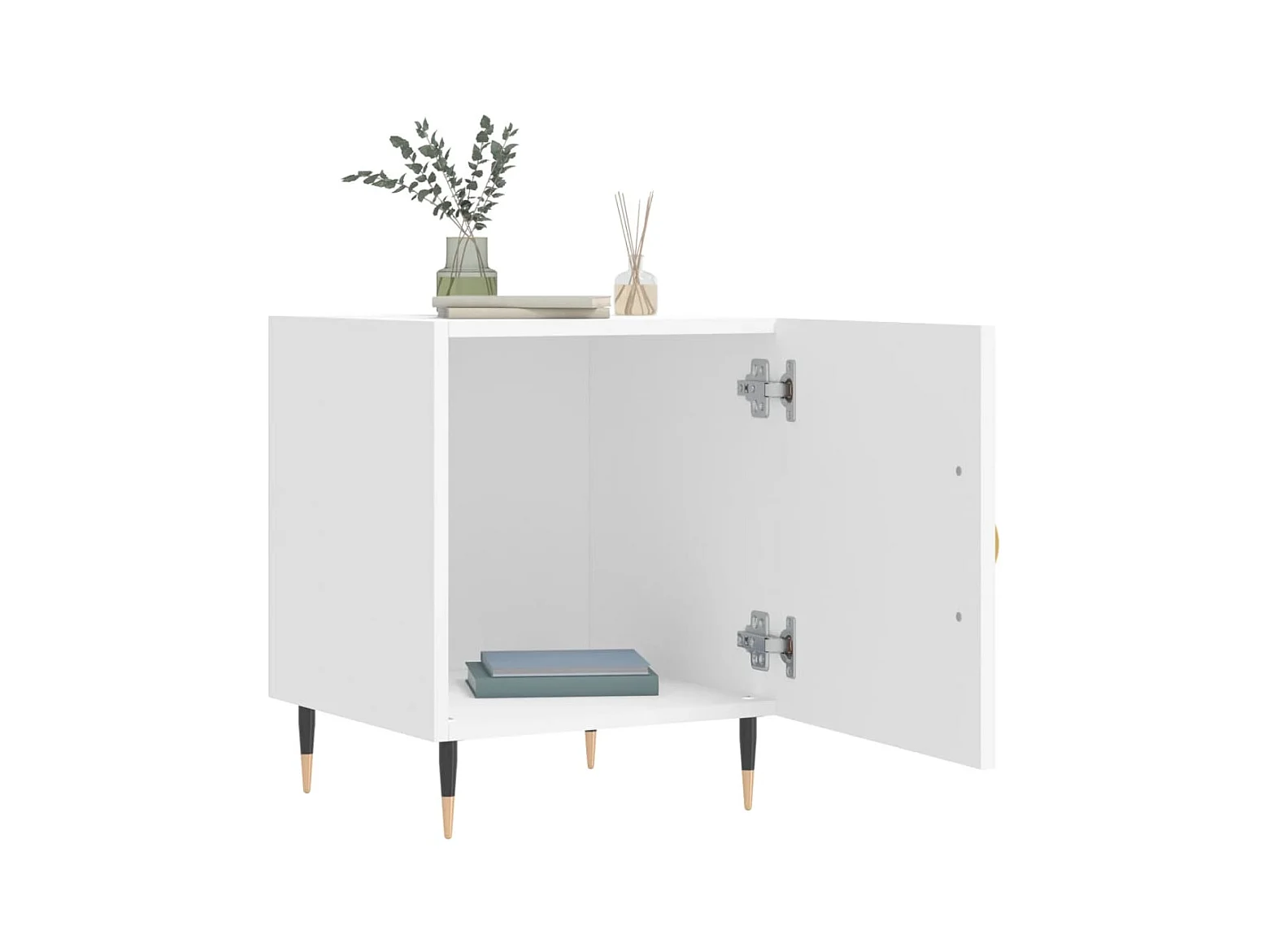 Mesa de cabeceira branca brilhante 40x40x50 cm madeira projetada
