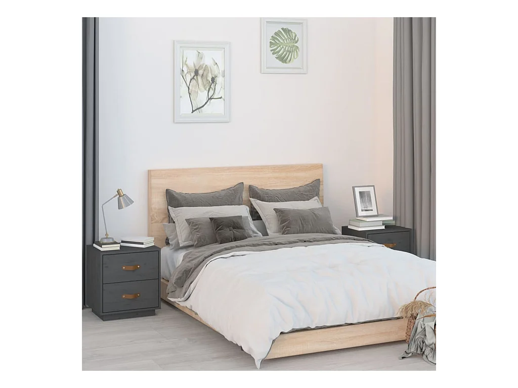 Mesas de cabeceira 2 unidades Cinza 40x34x55 cm Madeira maciça de pinho