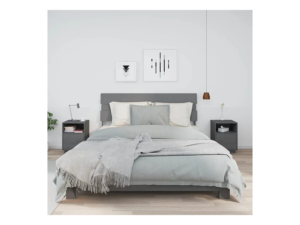 Mesas de cabeceira 2 unidades Cinza 40x34x45 cm Madeira maciça de pinho