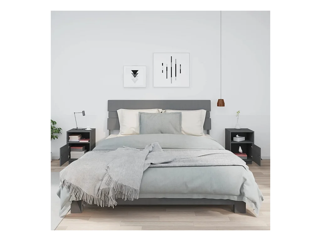 Mesas de cabeceira 2 unidades Cinza 40x34x55 cm Madeira maciça de pinho