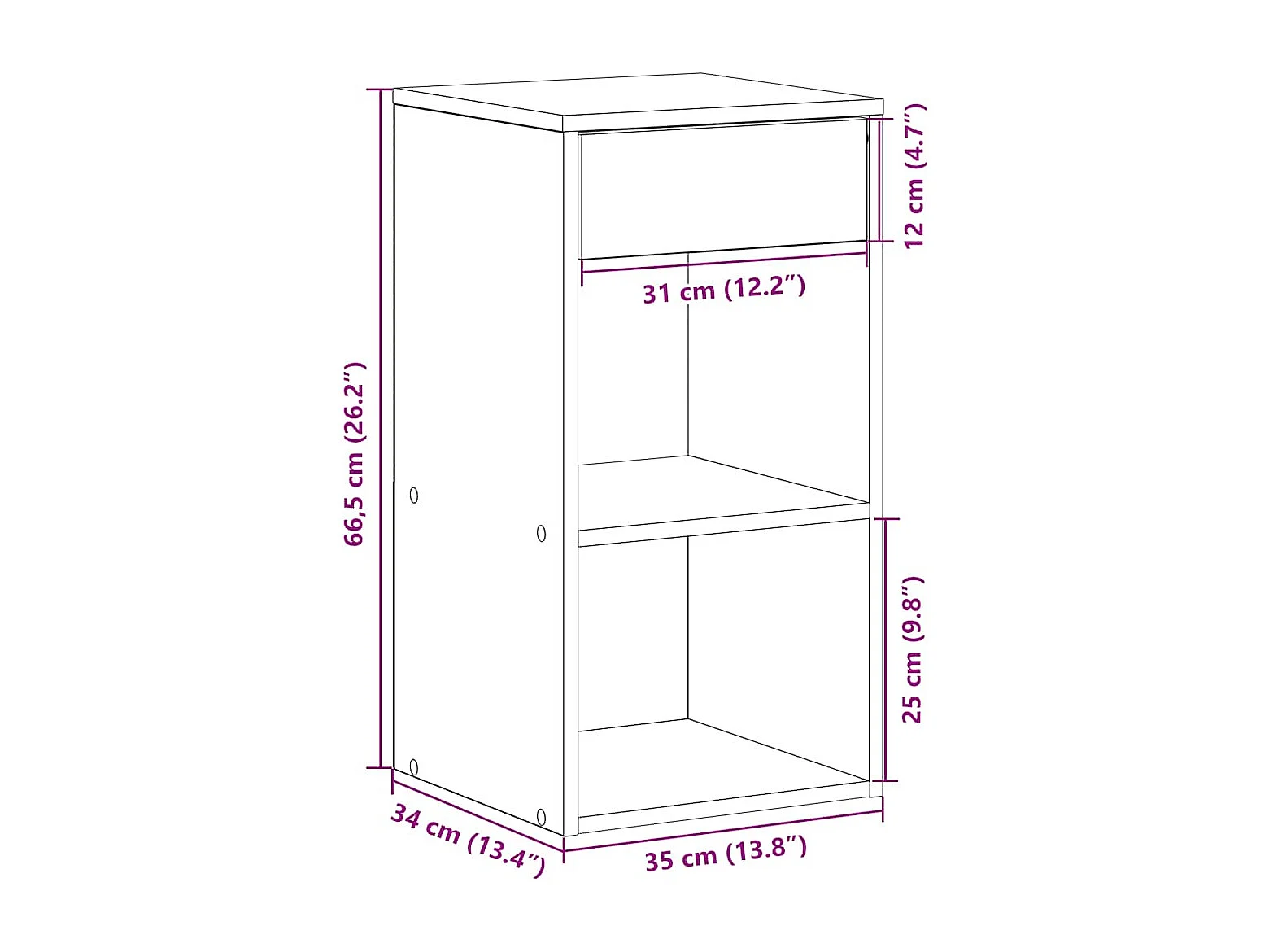 Mesa de cabeceira com gaveta 35x34x66,5 cm cinzento sonoma