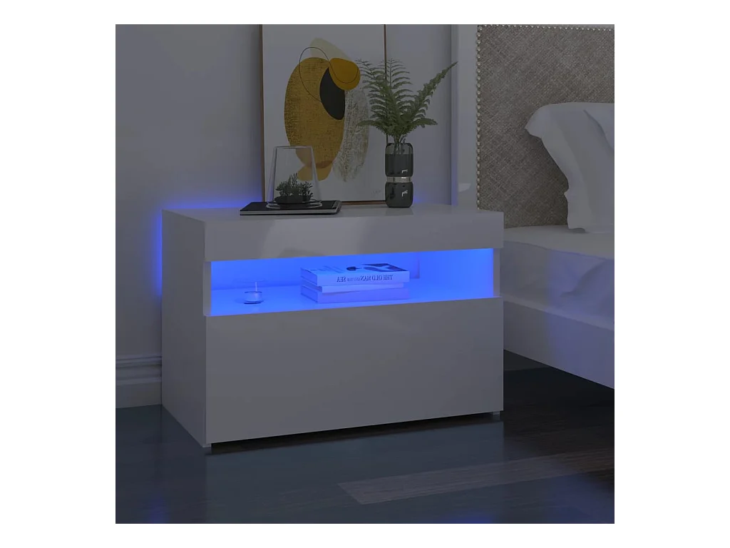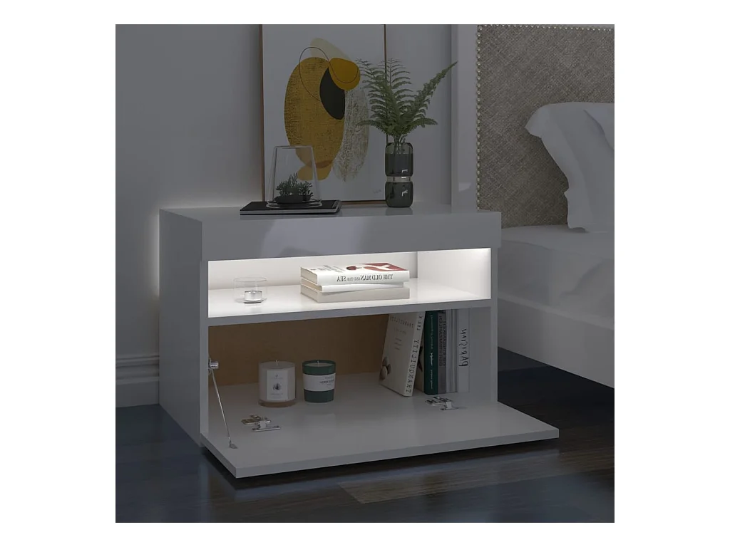 Mesas de cabeceira com luzes LED 2 peças branco brilhante 60x35x40 cm