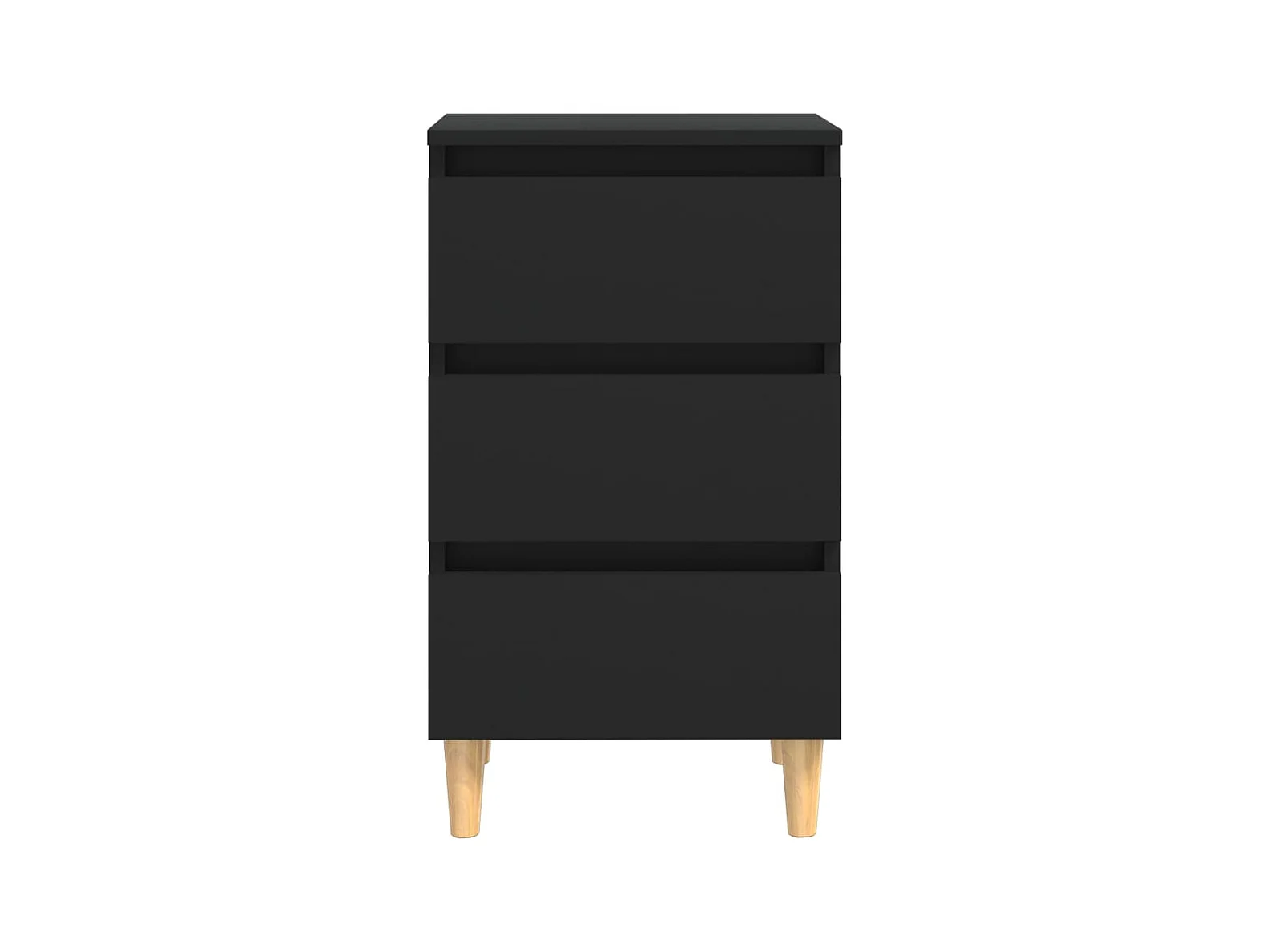 Mesa de cabeceira com pés de madeira Preto 40x35x69 cm