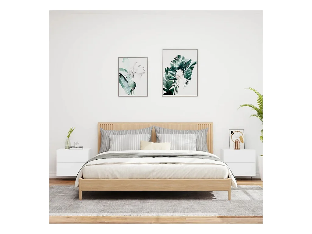 Mesas de cabeceira de parede com luzes LED 2 pcs branco PT61484