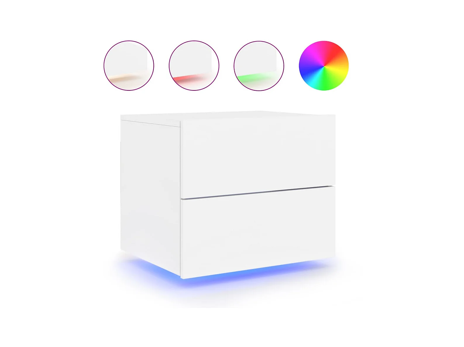 Mesa de cabeceira com luzes LED 50x40x45 cm branco PT36196