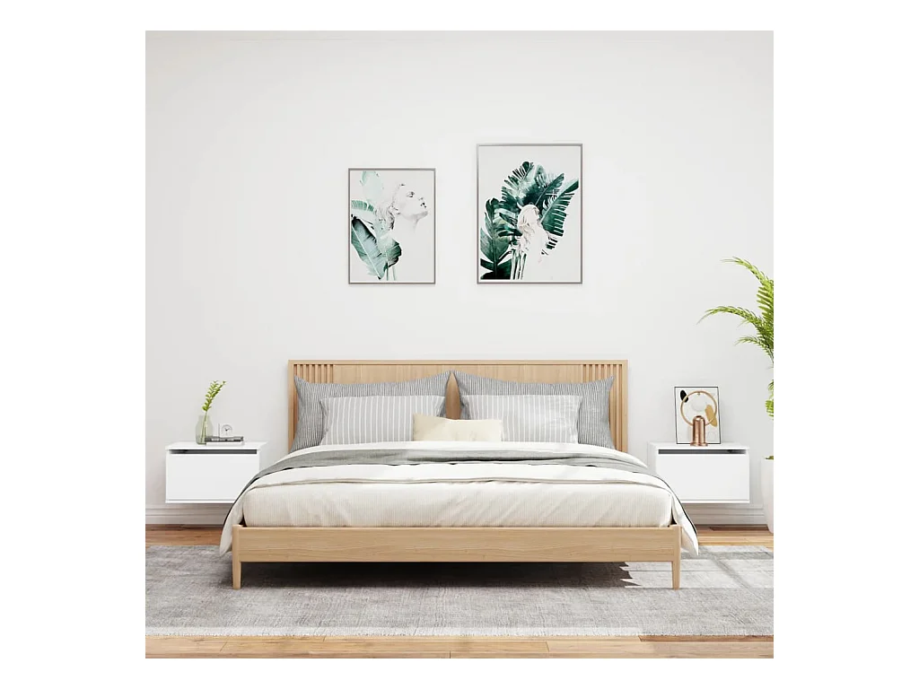 Mesas de cabeceira de parede com luzes LED 2 pcs branco PT61484