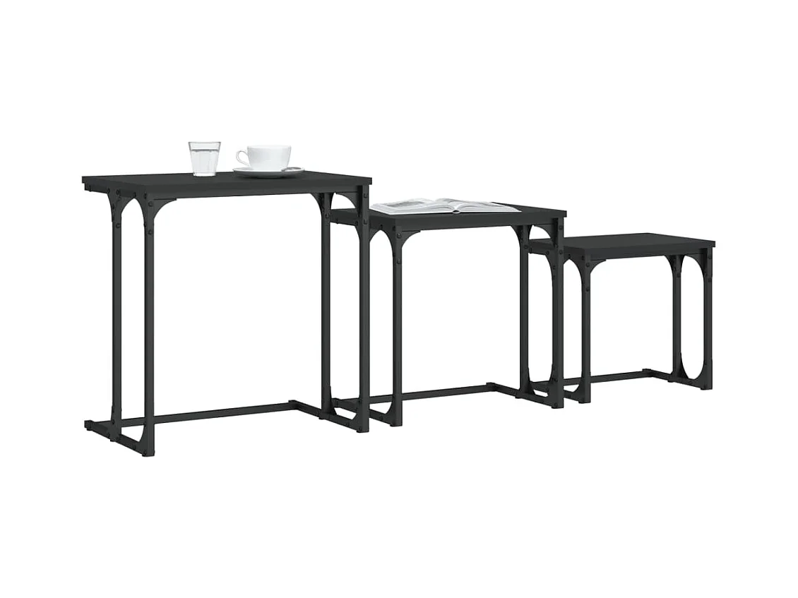 Mesas de centro de encastrar 3 pcs derivados de madeira preto PT866061