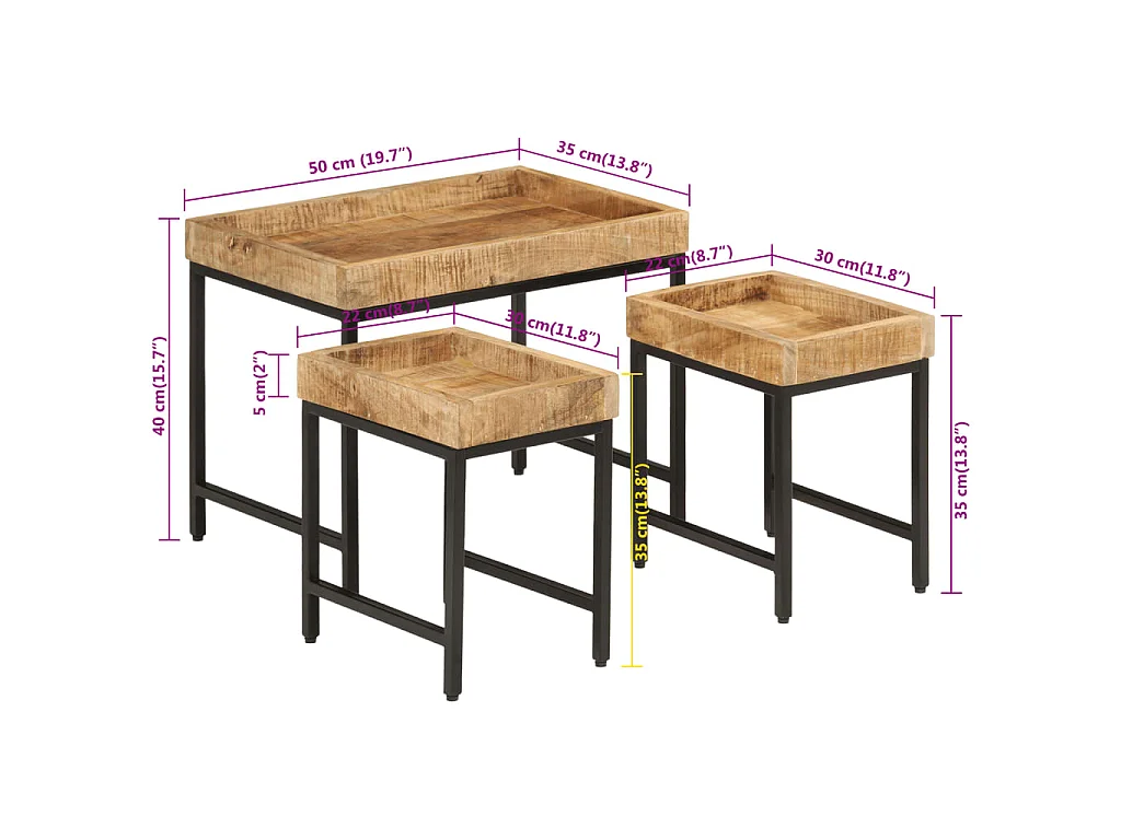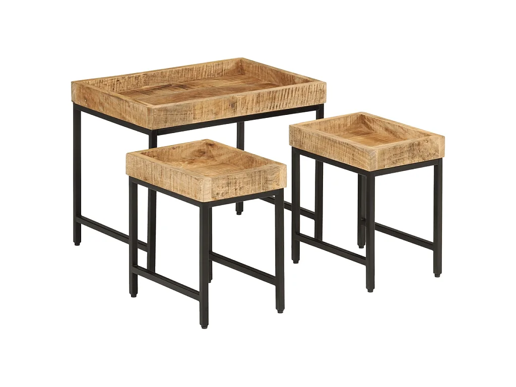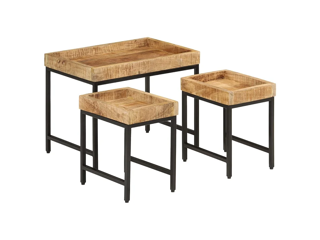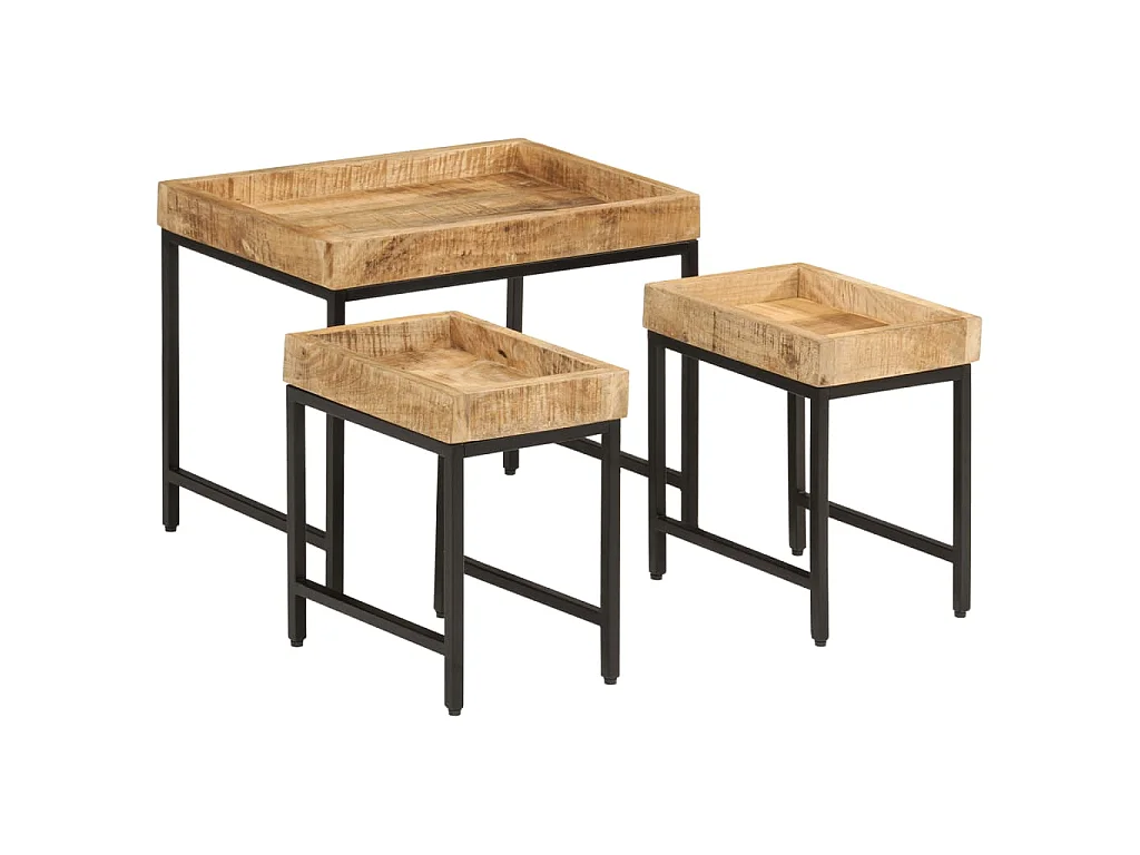 Mesas de centro de encastrar 3pcs mangueira maciça áspera/ferro