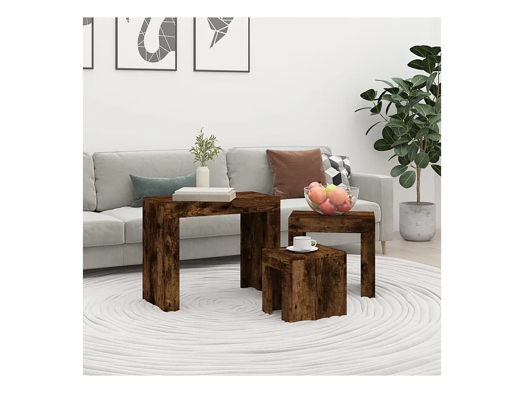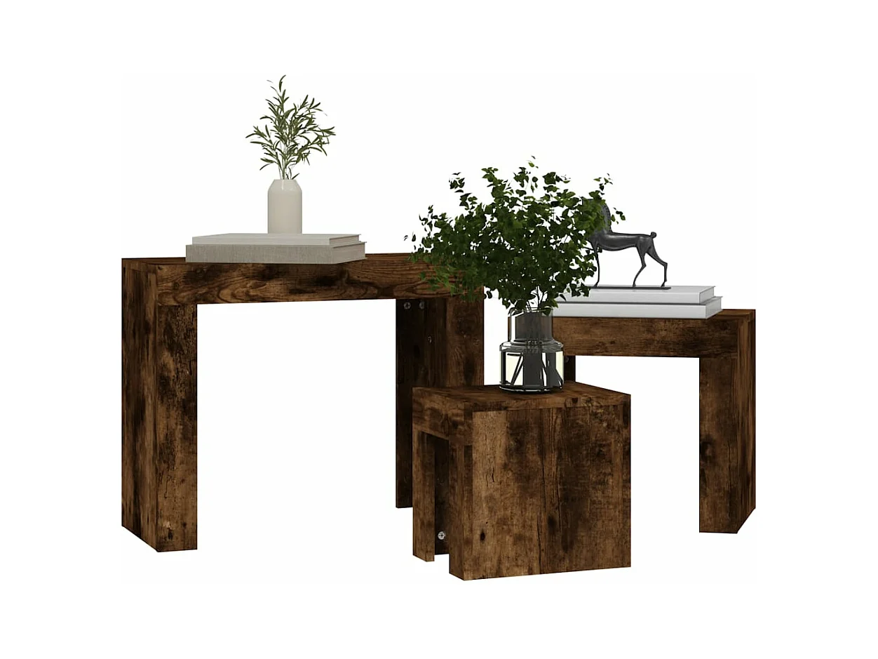Mesas de centro 3 pcs derivados de madeira carvalho fumado