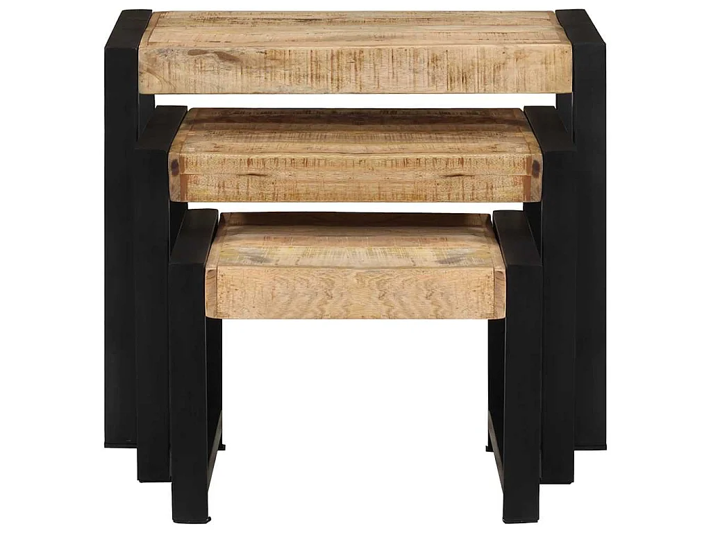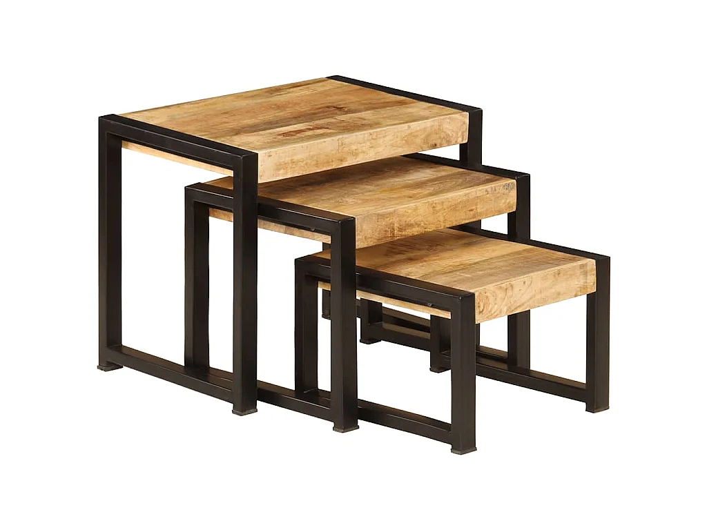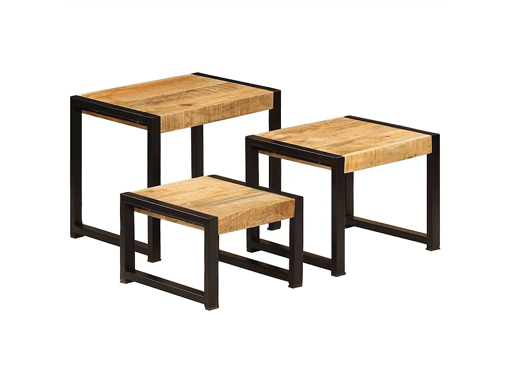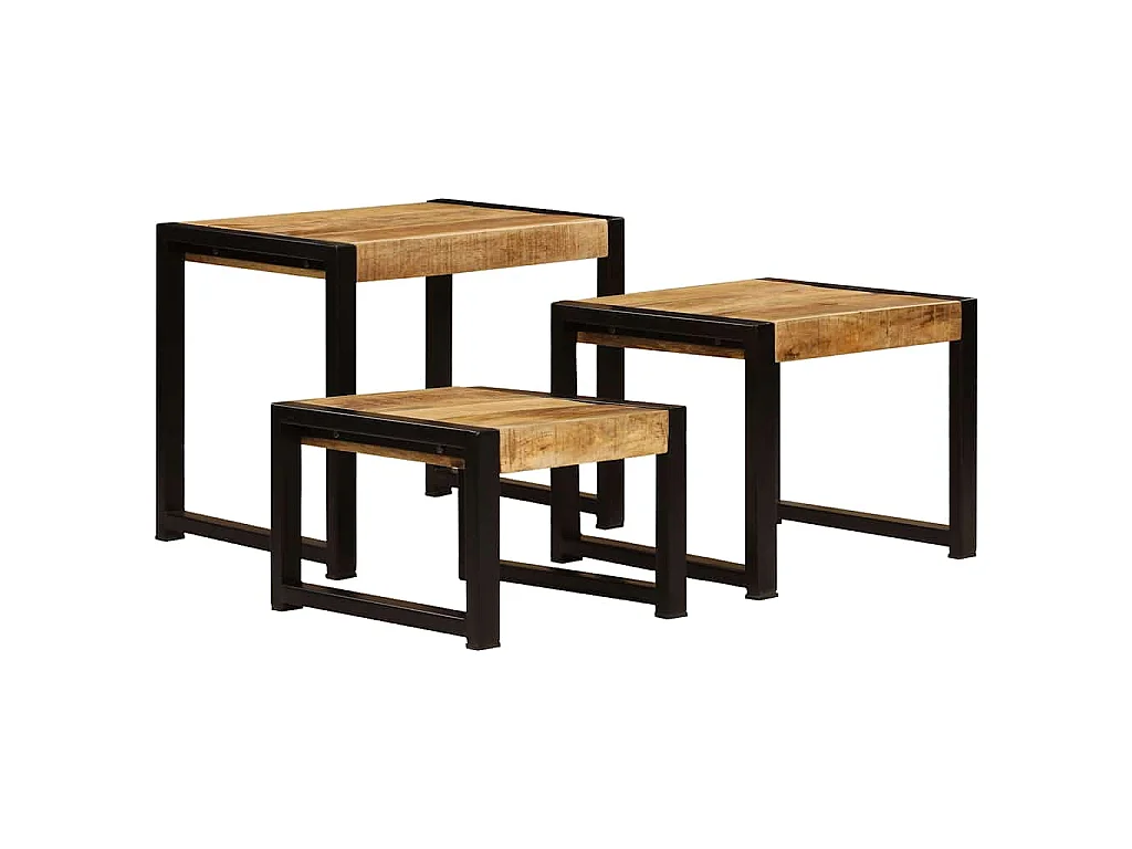 Mesas de encastrar 3 pcs madeira de mangueira maciça