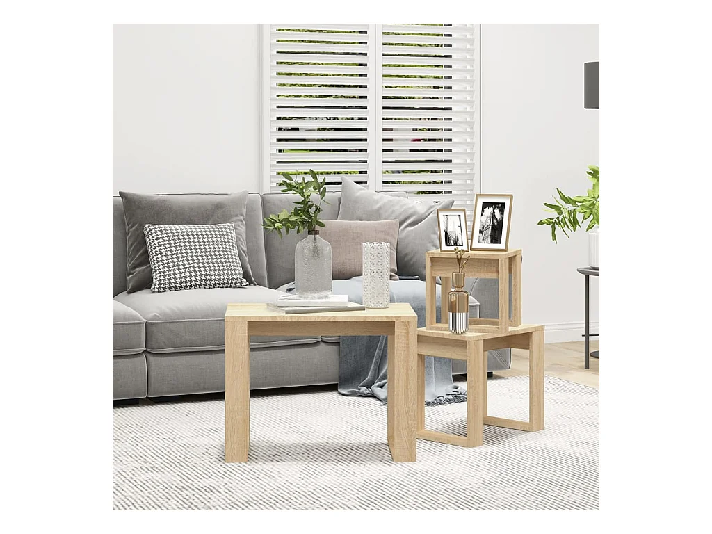 Mesas de centro encastrar 3 peças deriv. madeira carvalho sonoma