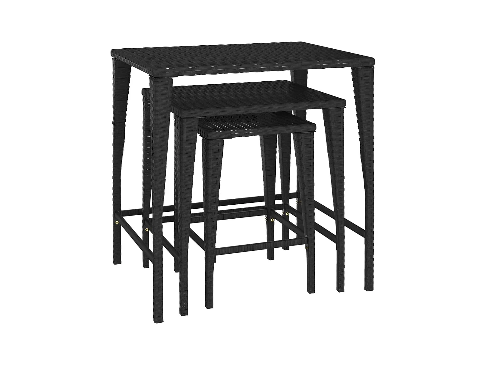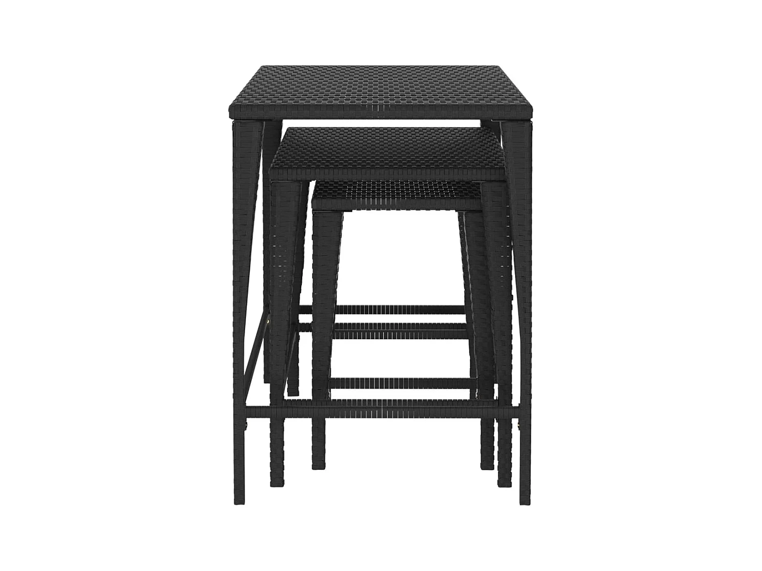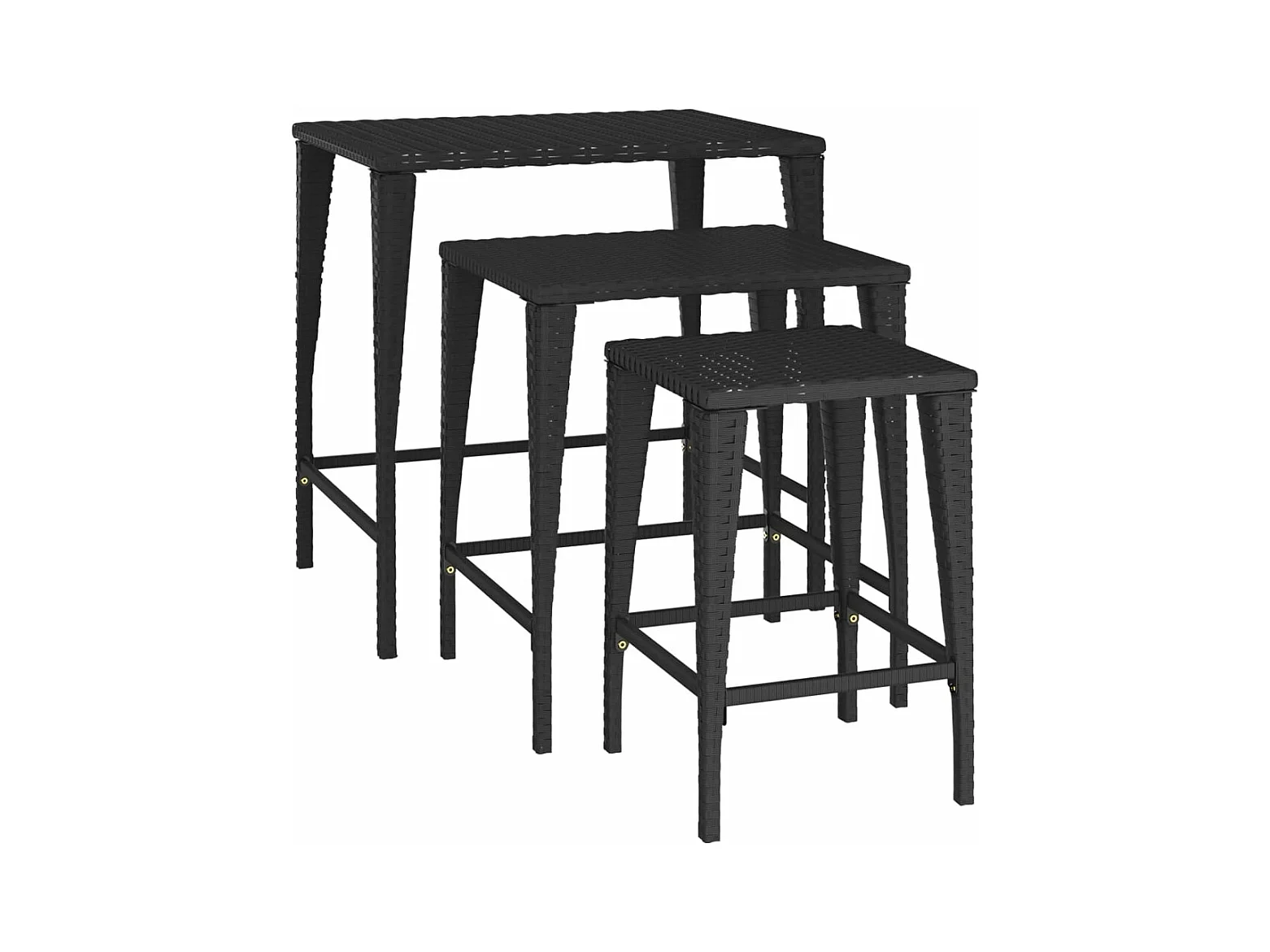 Mesas de encastrar para jardim 3 pcs vime PE preto