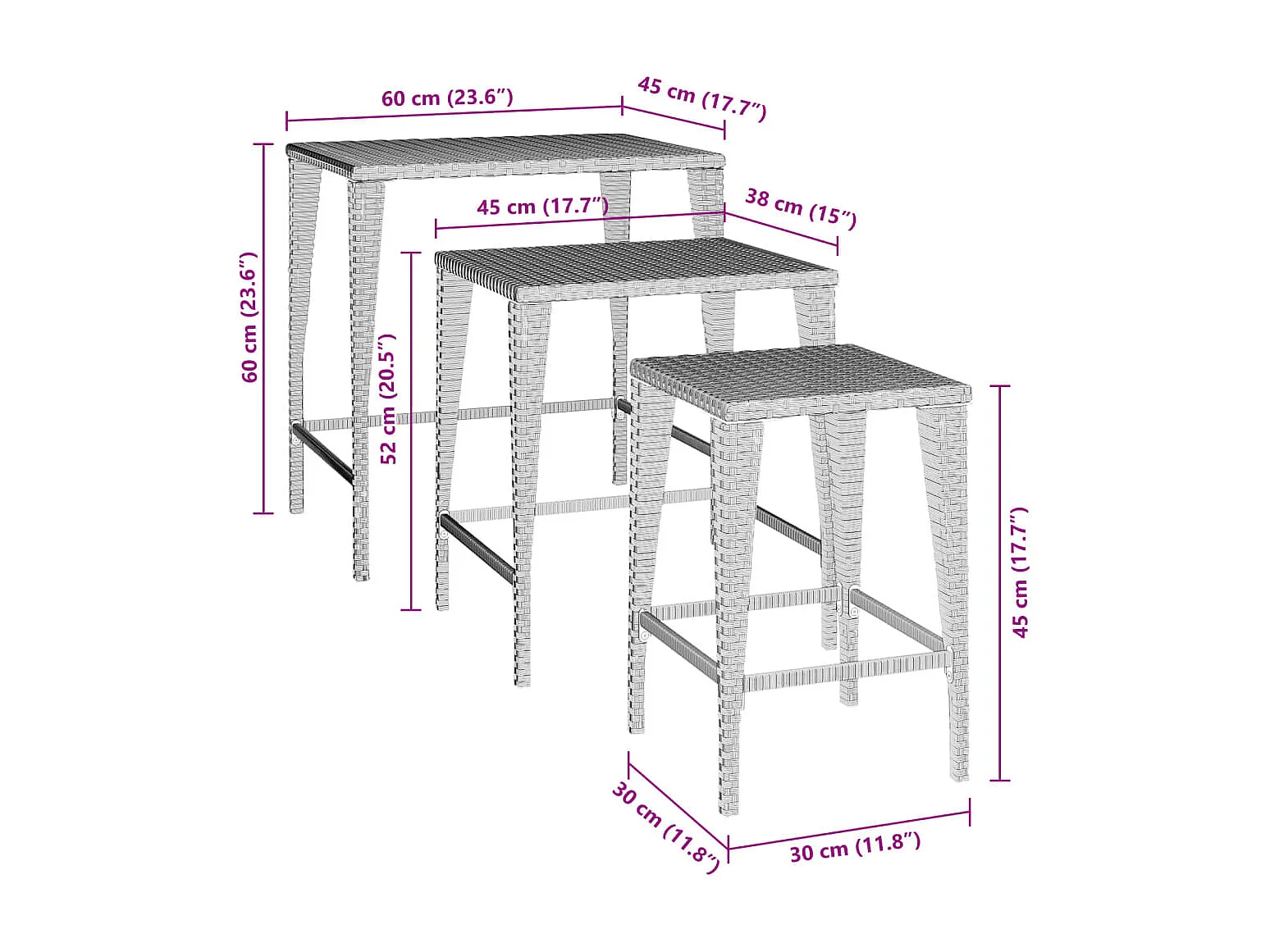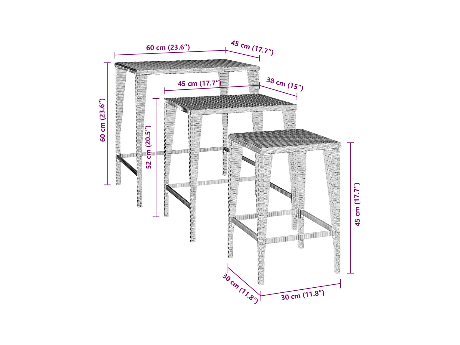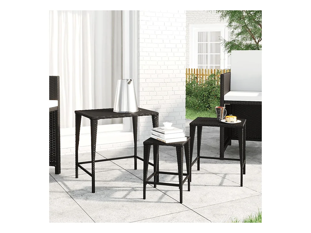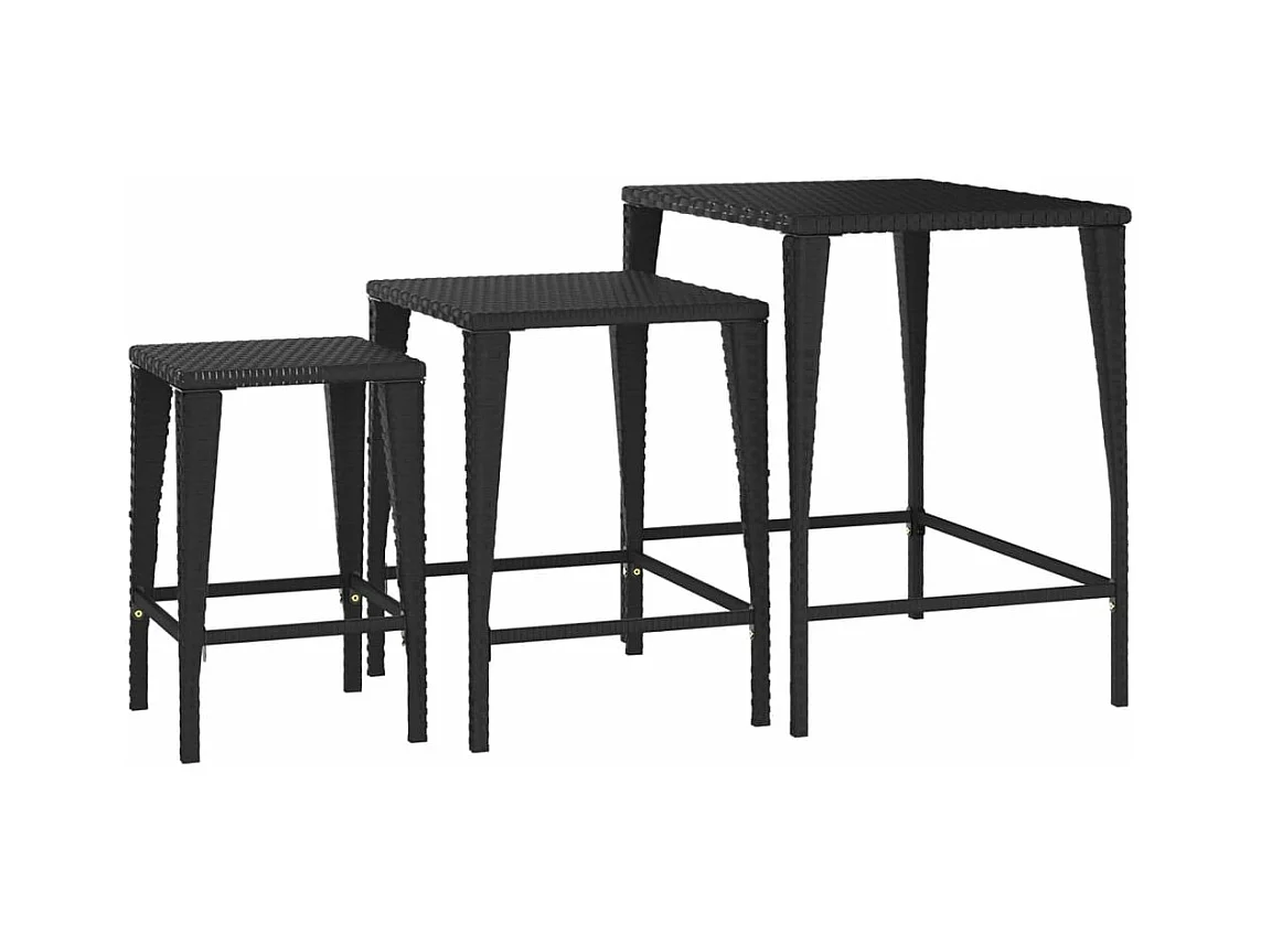 Mesas de encastrar para jardim 3 pcs vime PE preto