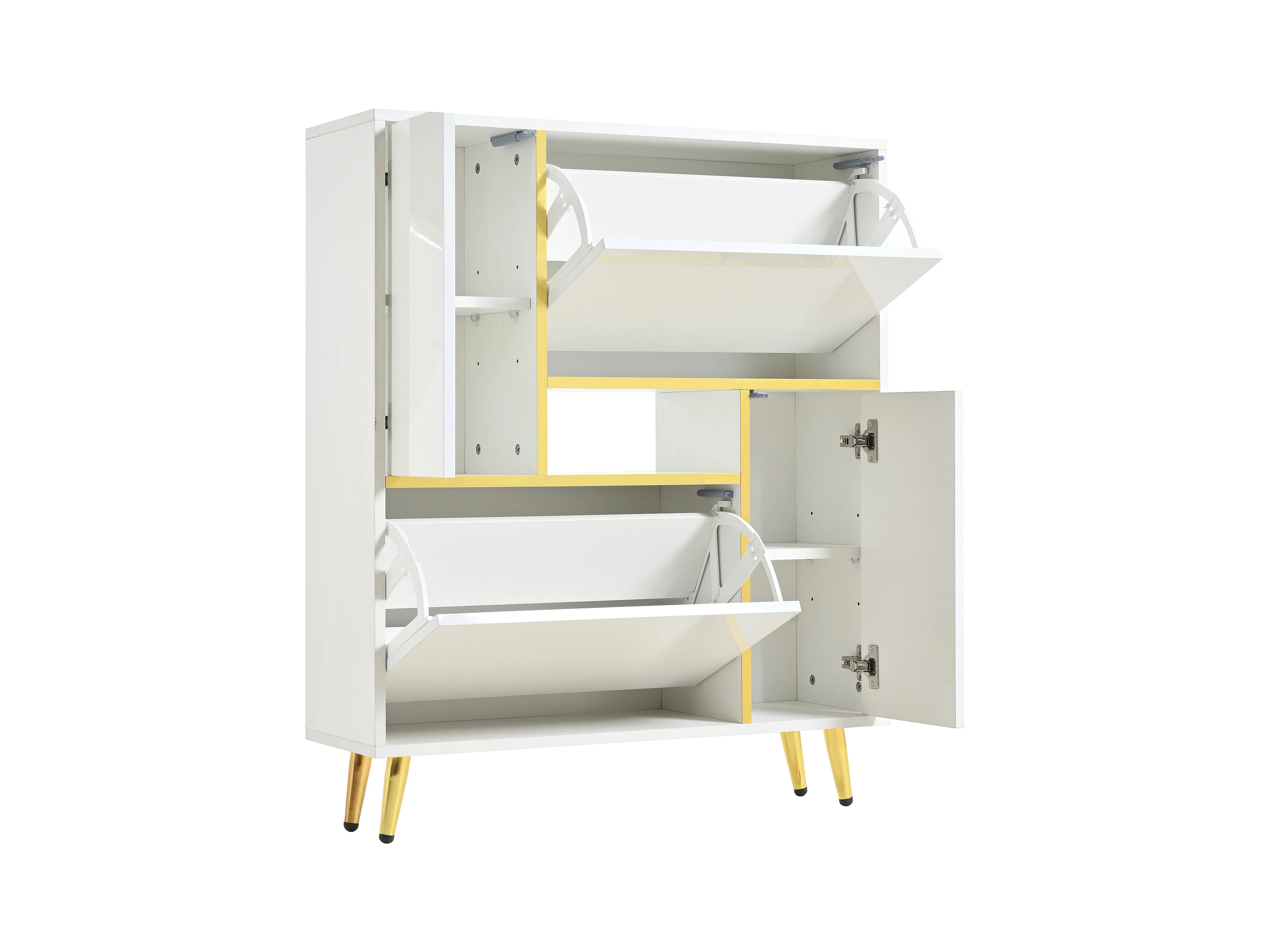 Móvel para sapatos 80x36x90cm - 4 portas - Pés de metal - MDF - Branco