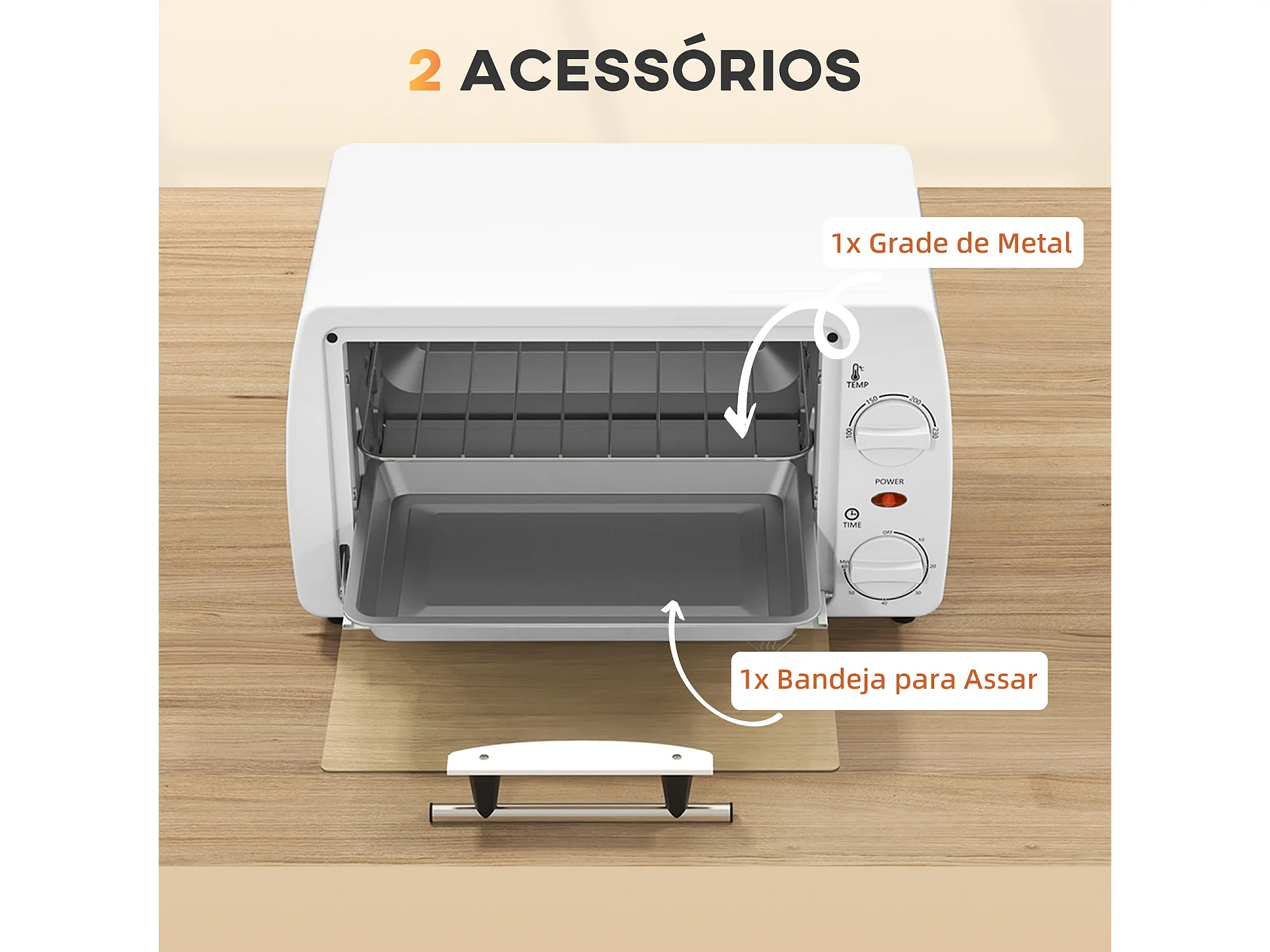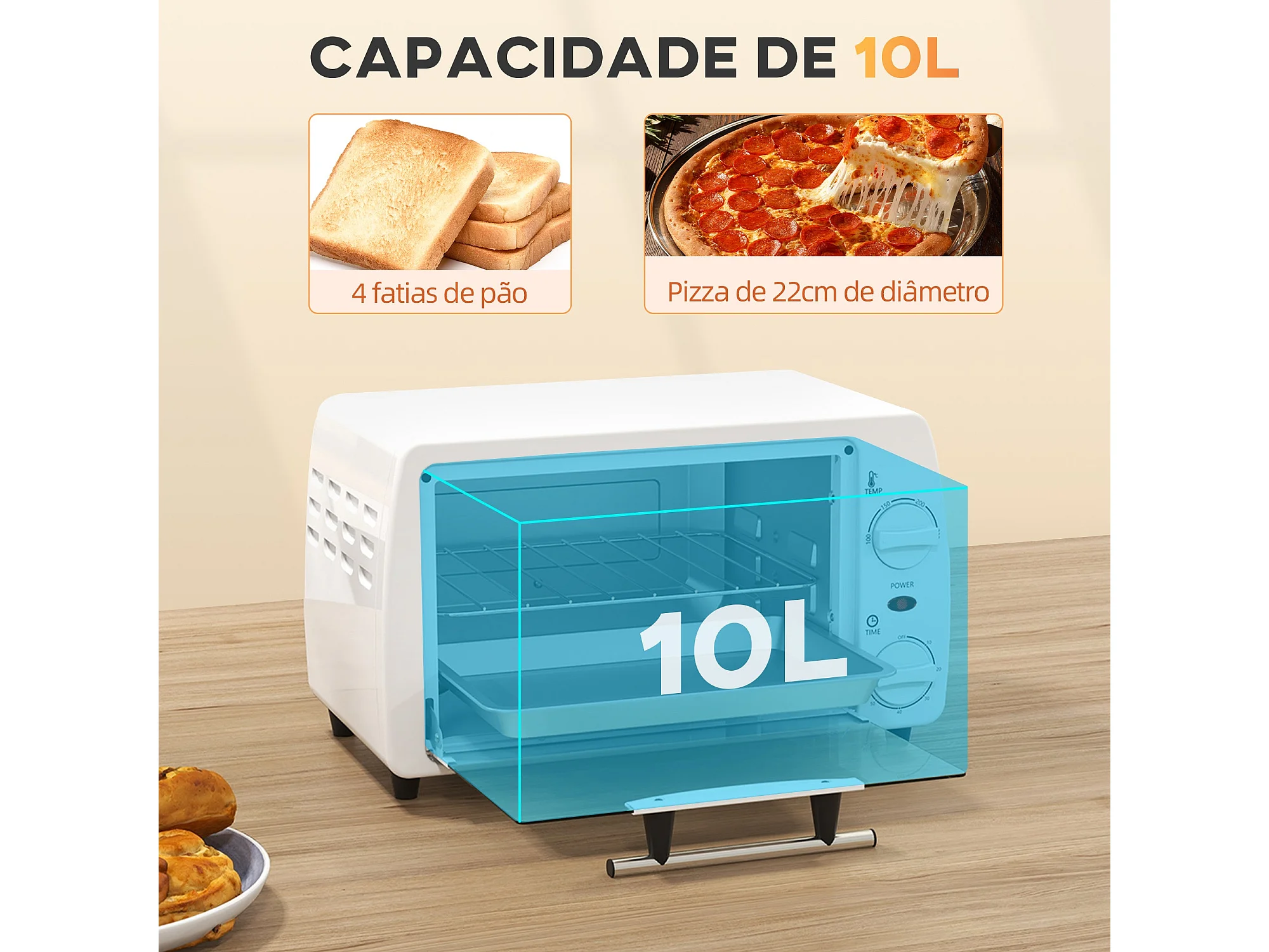 Mini Forno Elétrico HOMCOM 10 Litros 750W - Temperatura até 230°C e Temporizador de 60 Minutos