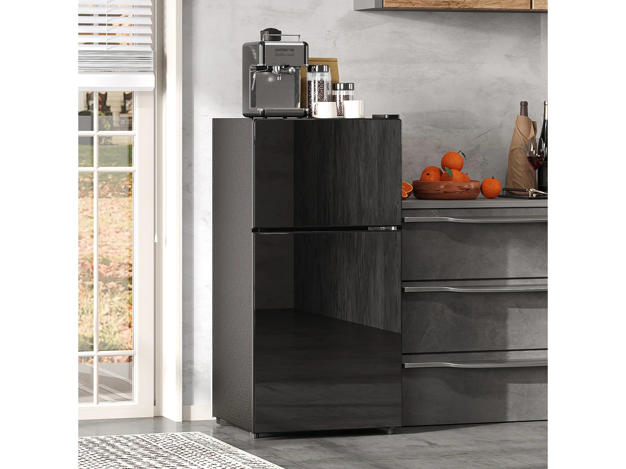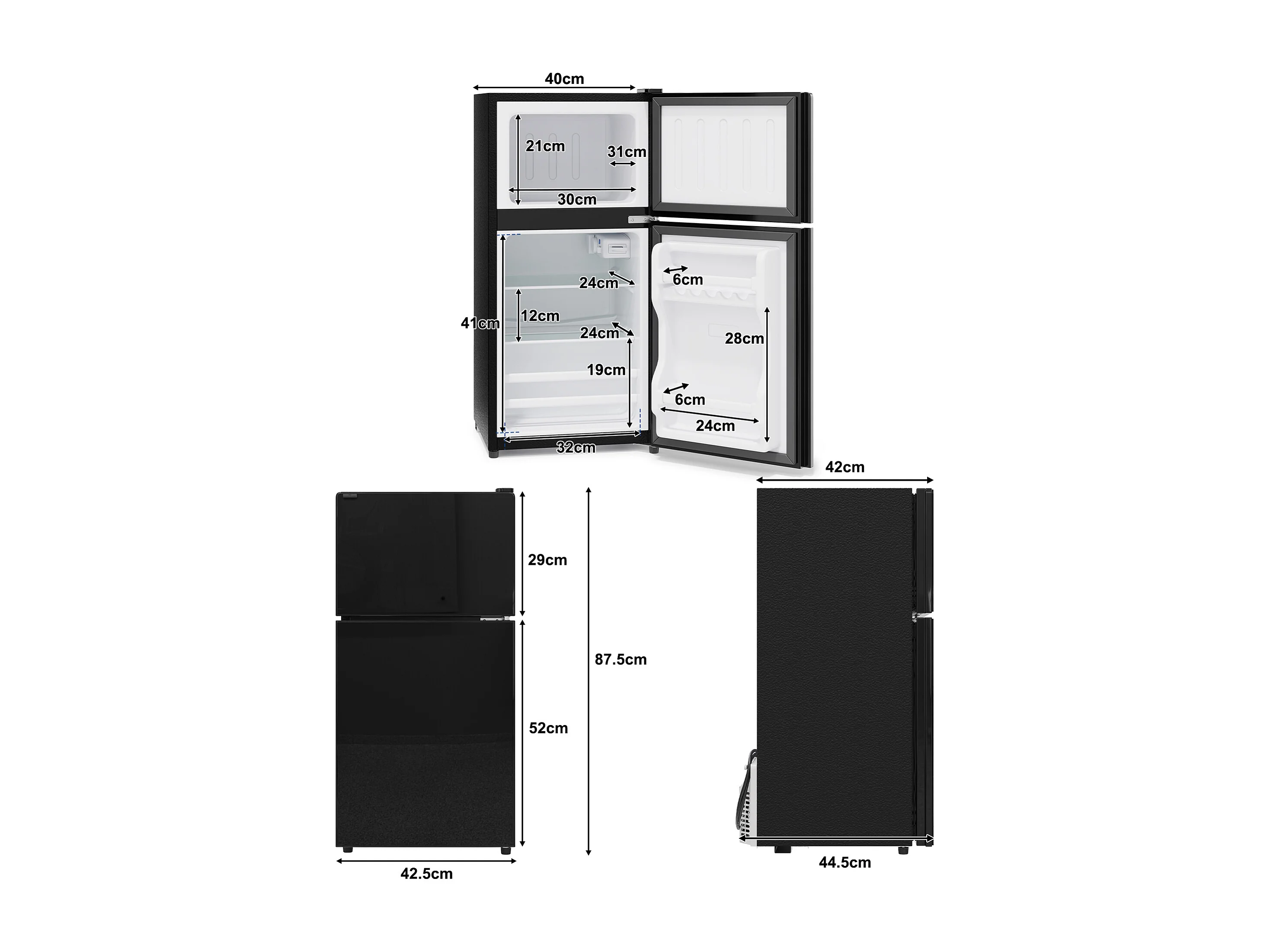 Mini geladeira de 60L com compartimento congelador (22L) + porta + LEDs - 42,5 x 44,5 x 87,5 cm - Metal - Preta
