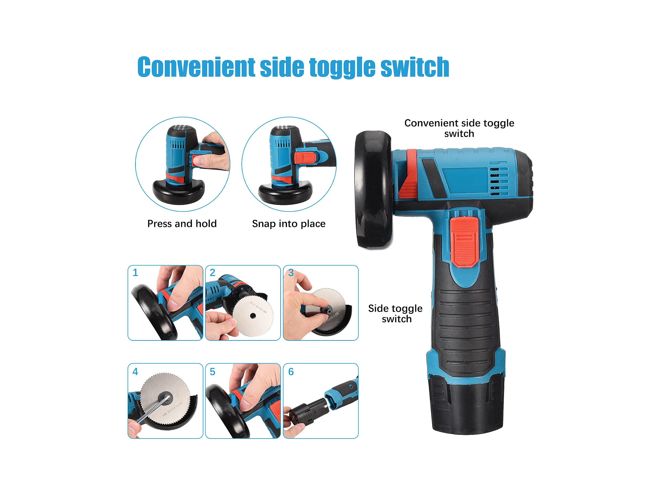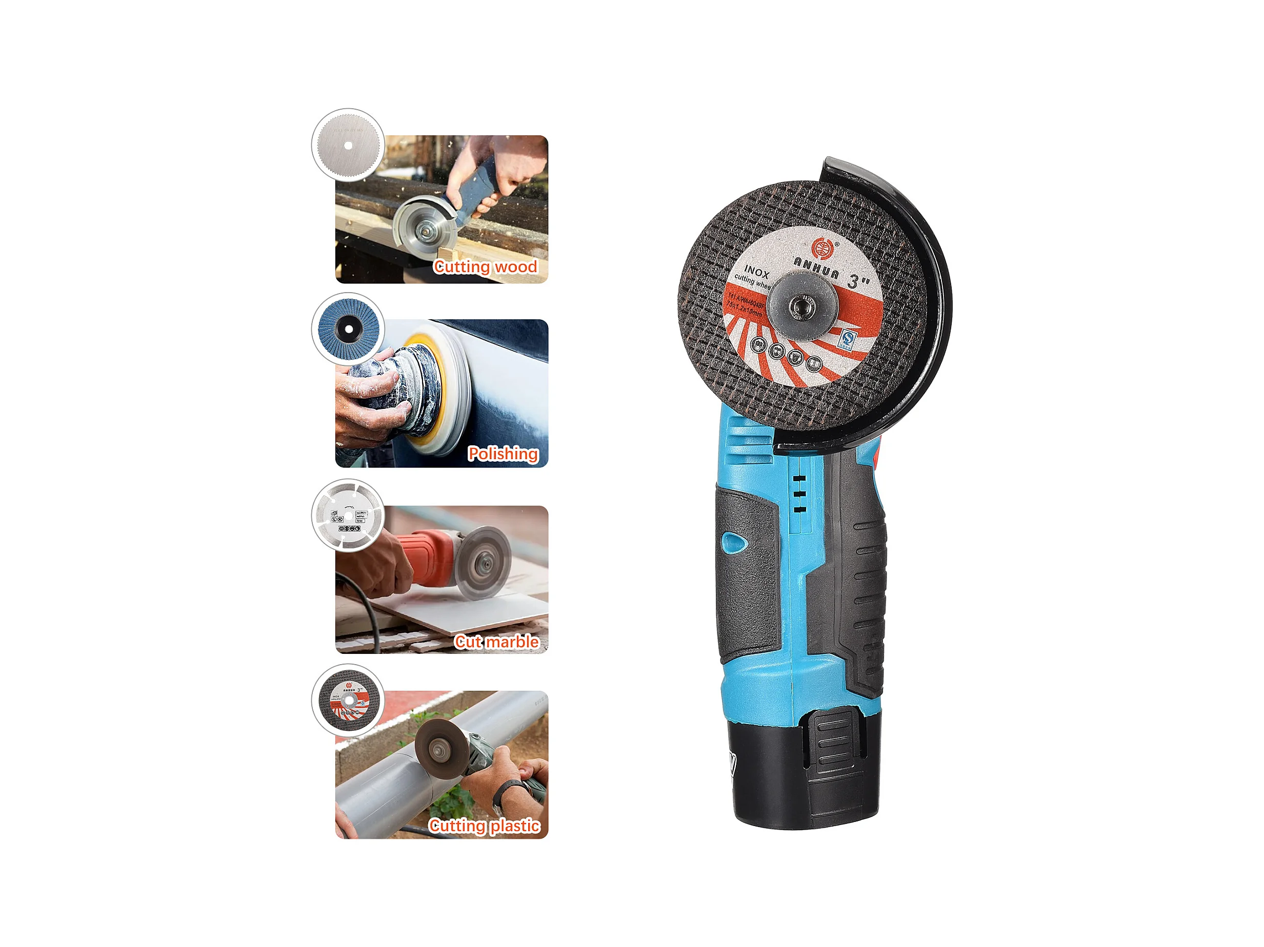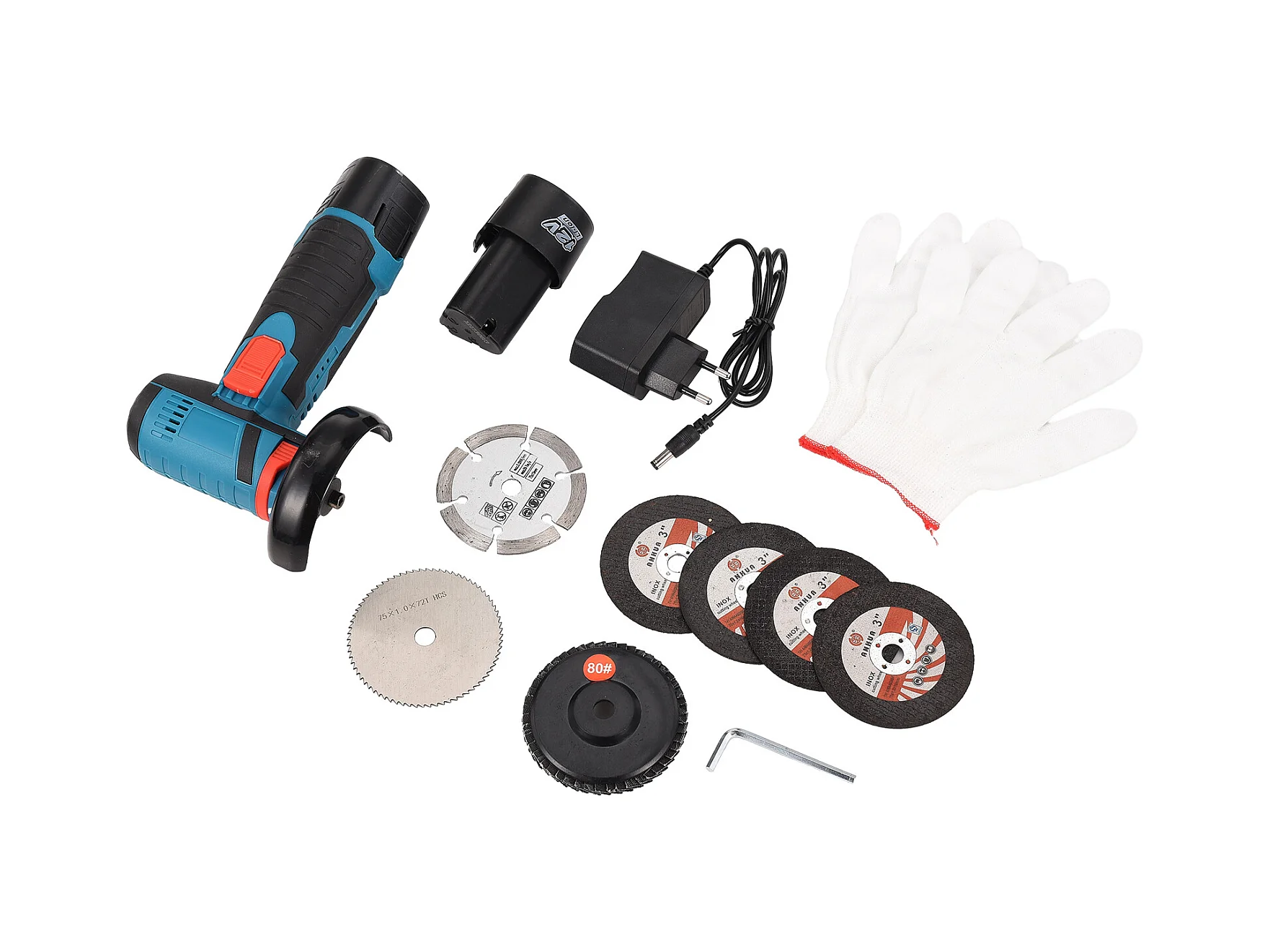 Mini rebarbadora angular sem fios 19500 RPM com bateria flexível, para lixar, cortar e polir com 2 baterias de 12 V e 2000 mAh