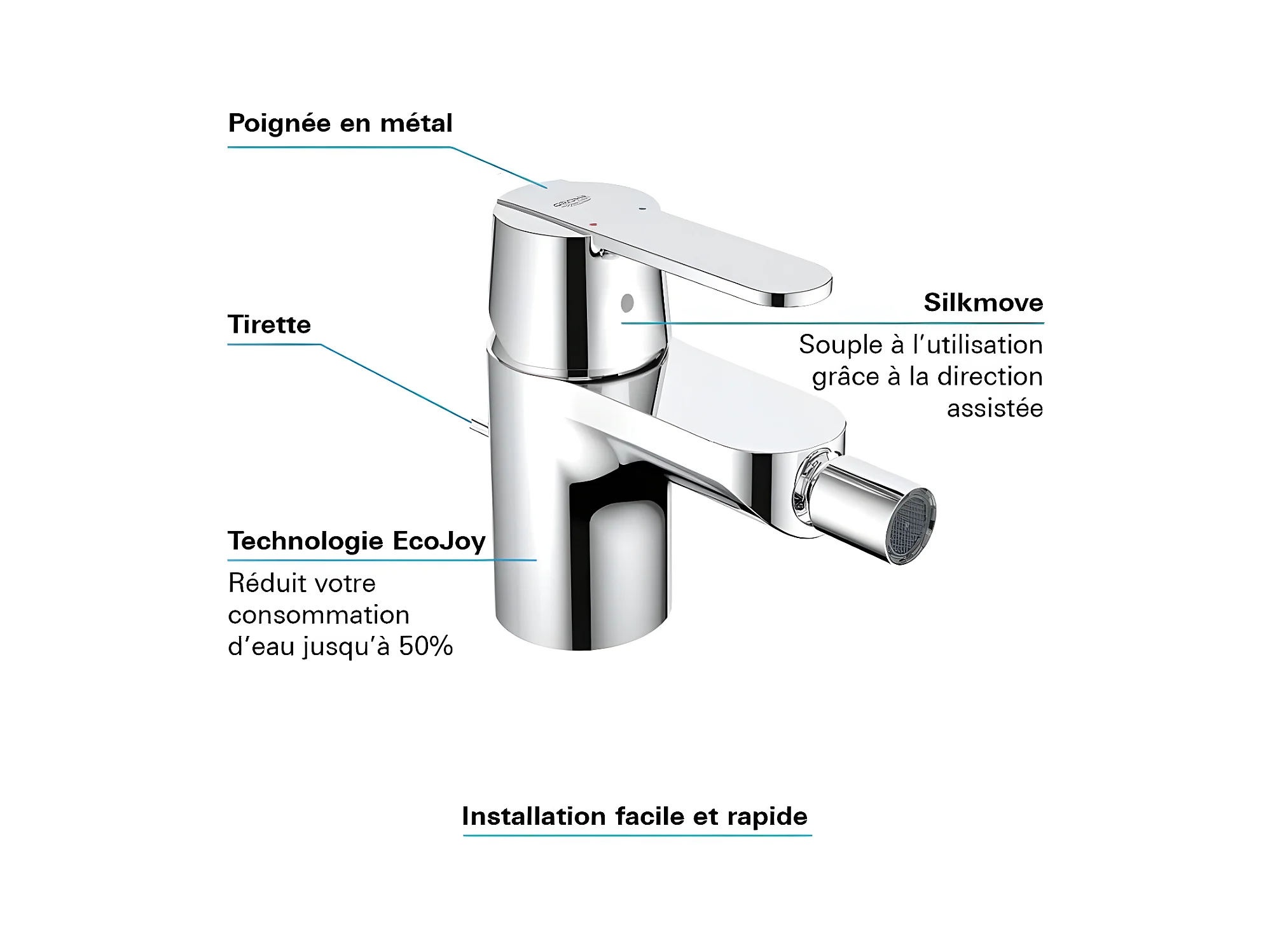 Misturador bidé Grohe Start Classic com válvula de escoamento, cromado - Poupança de água e instalação rápida