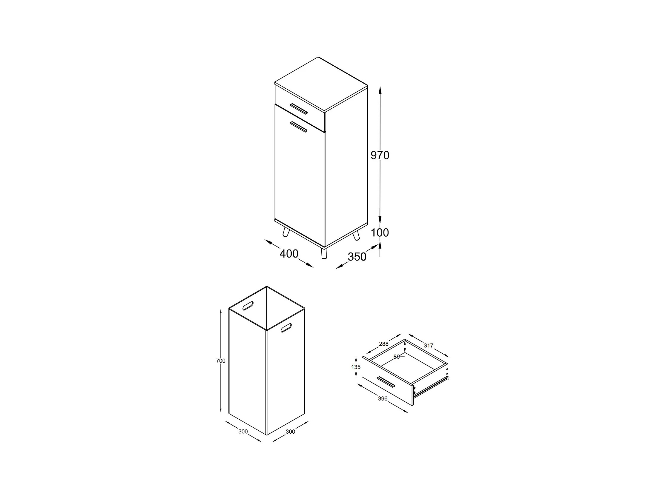 Mobiliário de casa de banho armário alto Landos Branco/carvalho de mel A. 107 x L. 40 x P. 35 cm