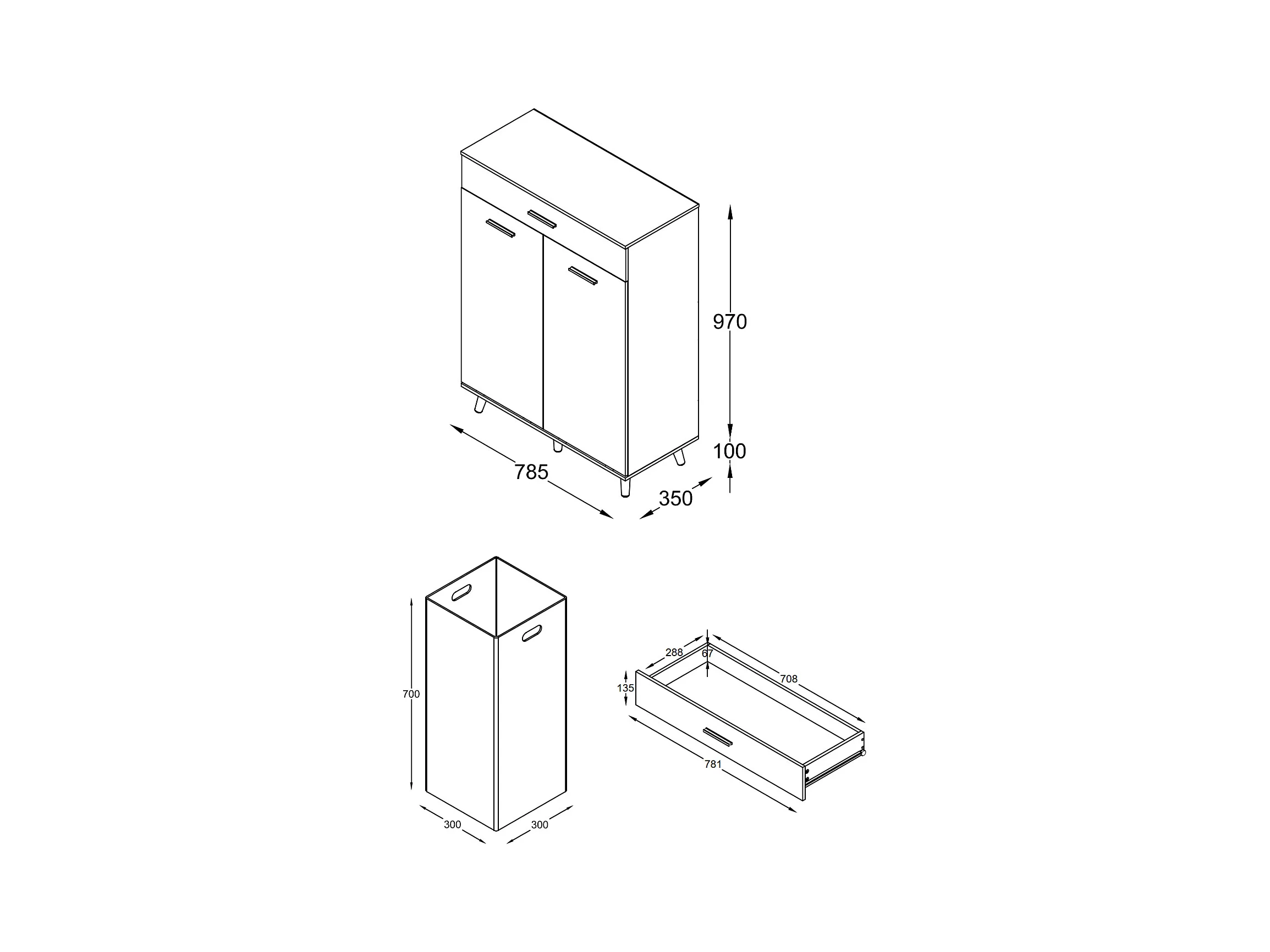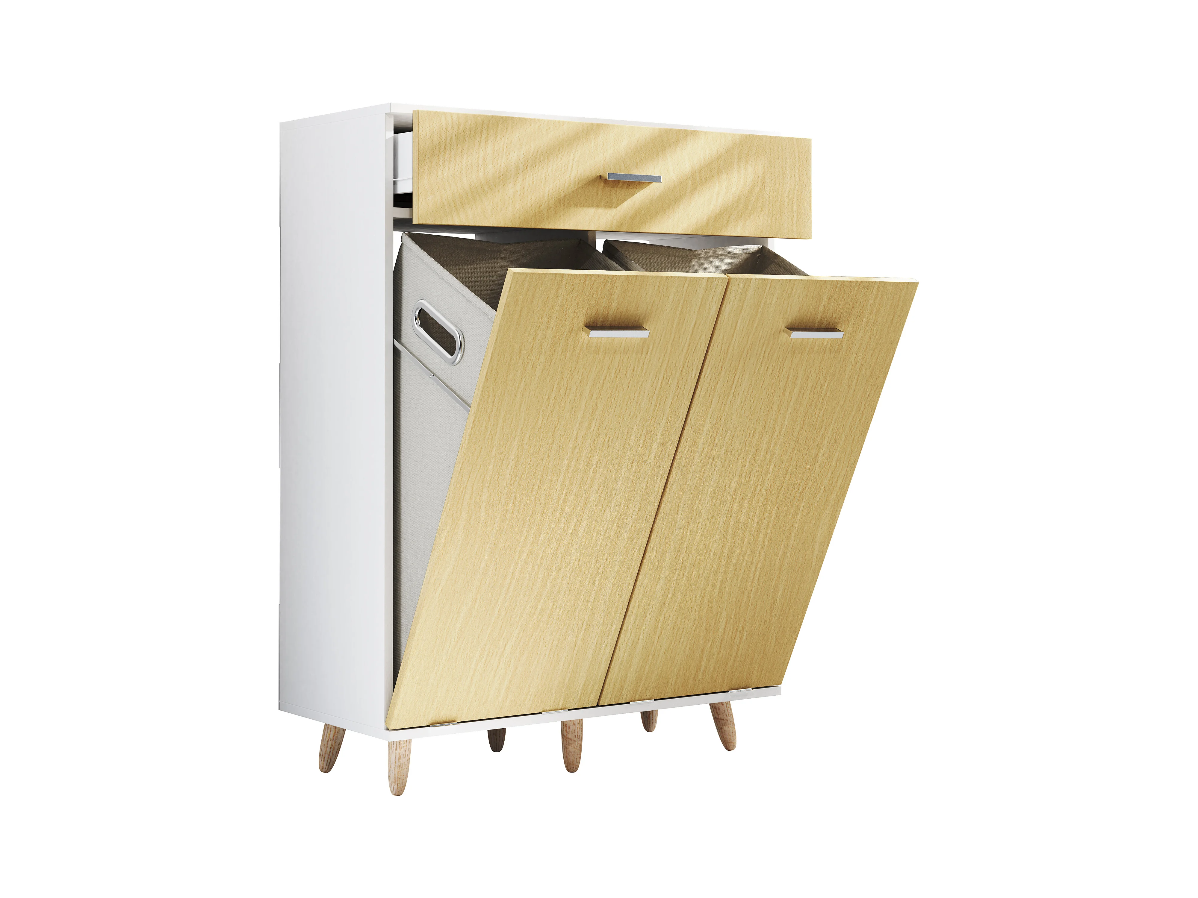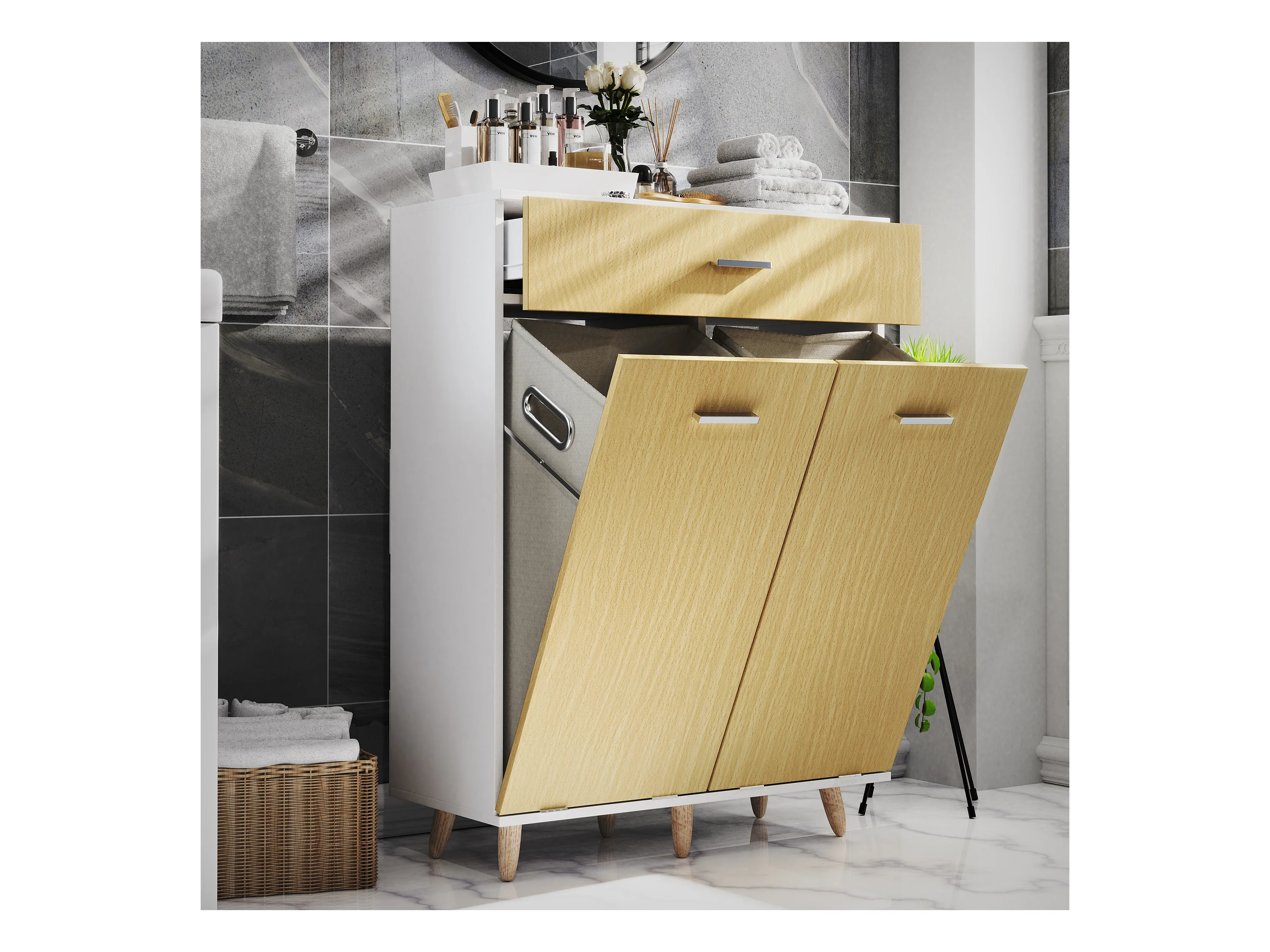 SoBuy Armário de casa de banho economizador de espaço com 2 cestos e gavetas madeira branca 79.5x38x90cm