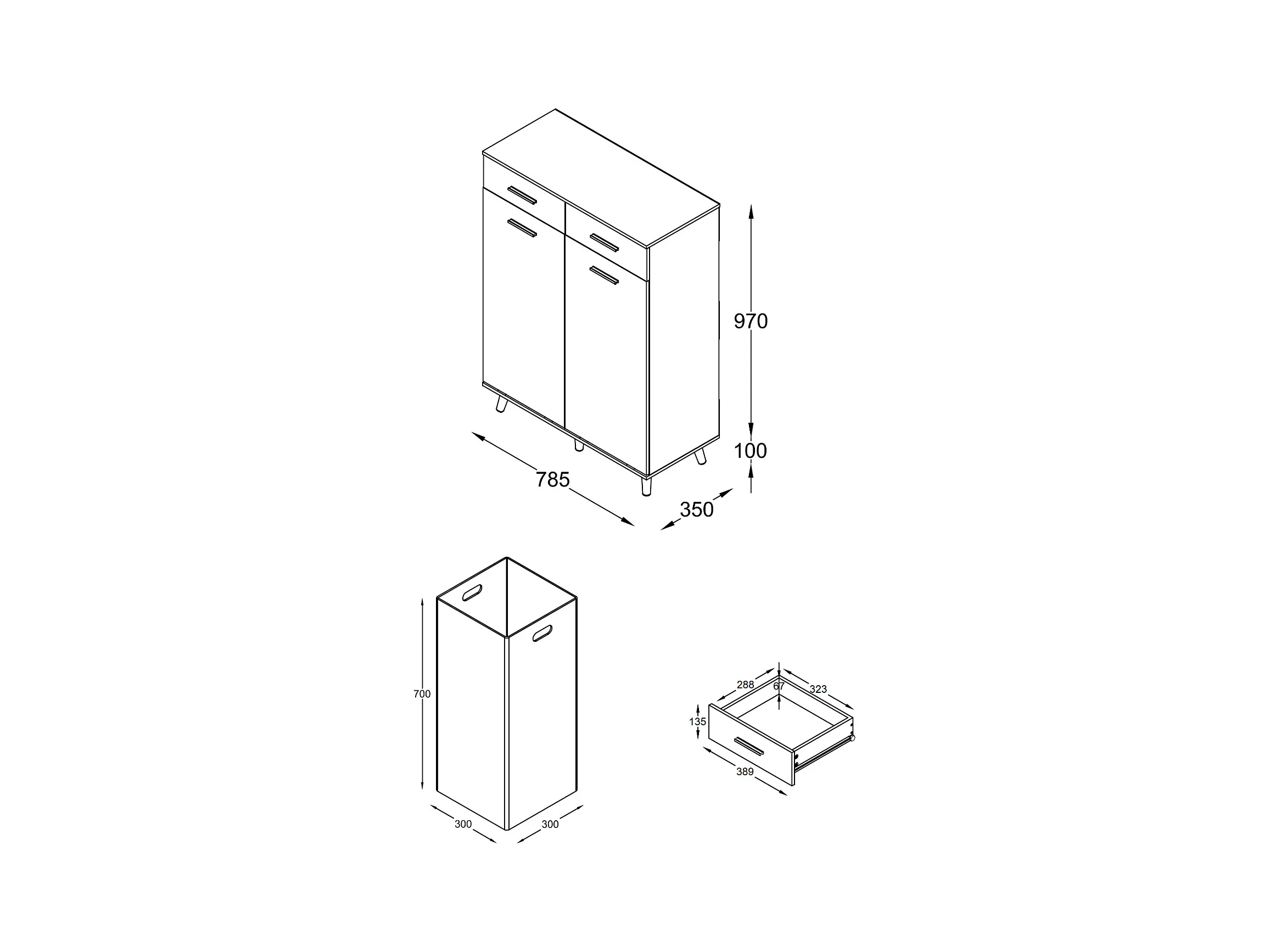 Mobiliário de casa de banho armário alto Landos Branco/carvalho de mel A. 97 x W 79 x P. 35 cm