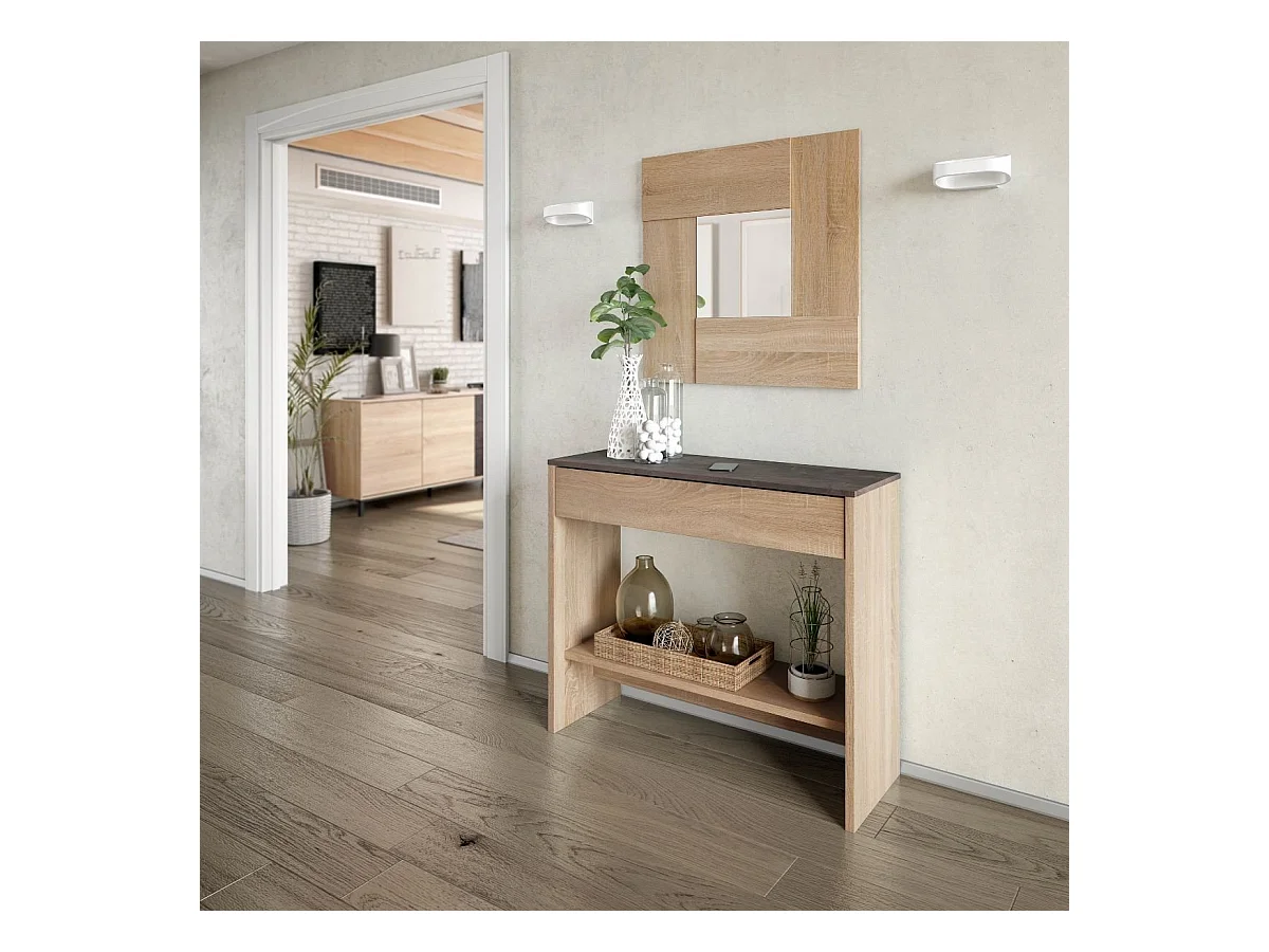Consola de entrada com espelho Oxys - Carvalho Canadiano - Design Moderno - Fabricado em Espanha