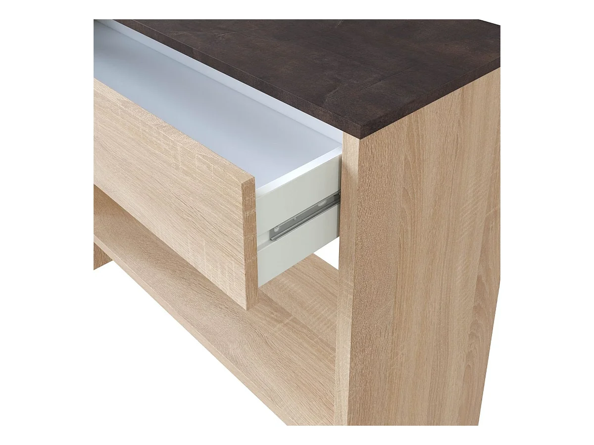 Mesa console moderna - com 2 gavetas - com prateleiras abertas - Natural