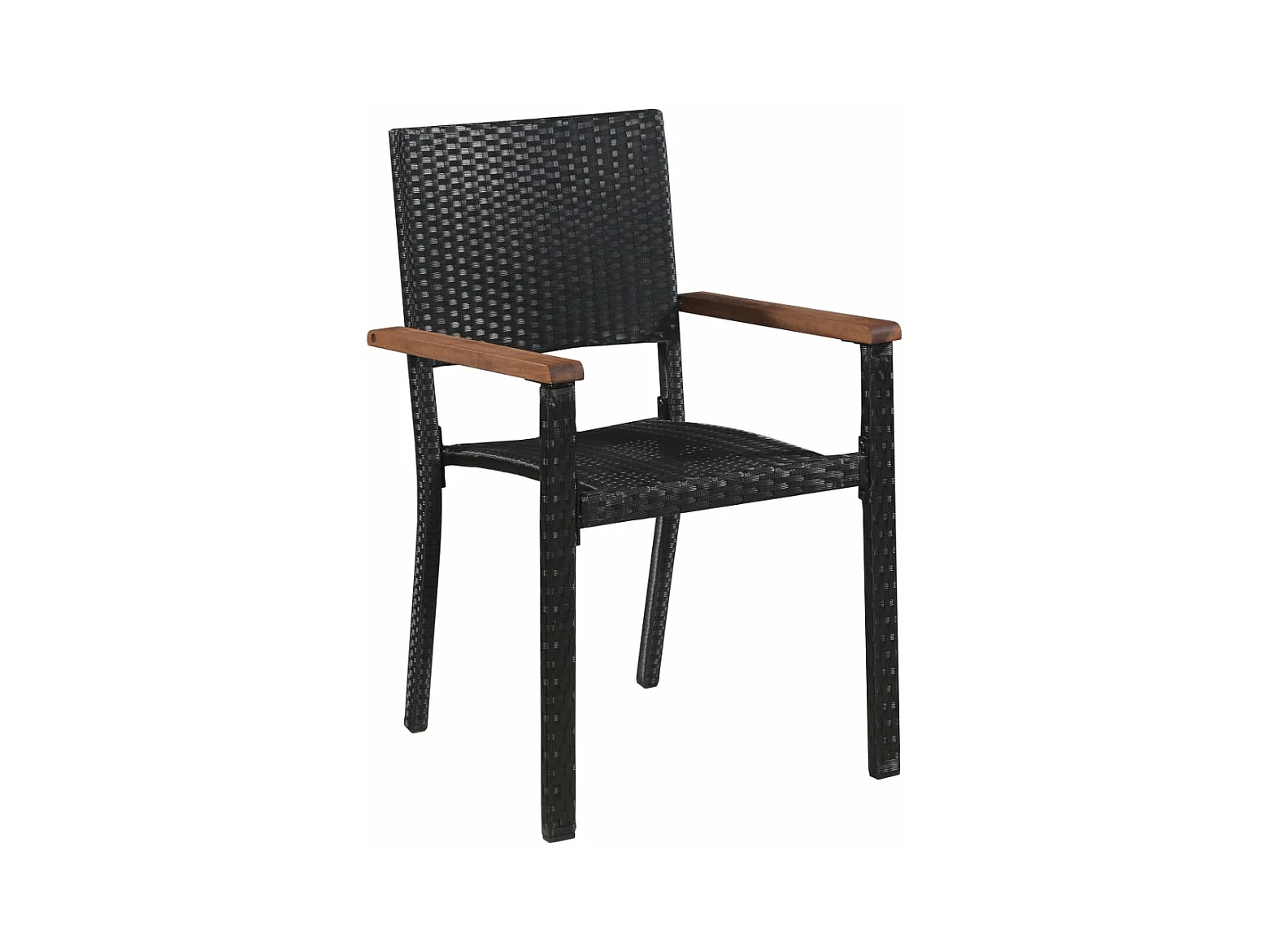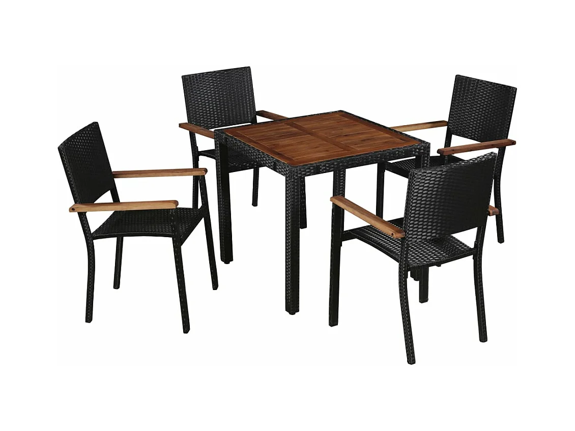 Mobiliário de exterior 5 peças em resina tecida e madeira de acácia preta 02_0014528