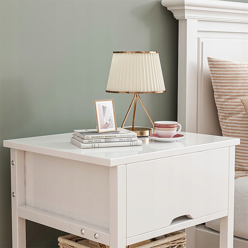 SoBuy Mesa de Cabeceira Moderna com Gaveta e Prateleira em Branco