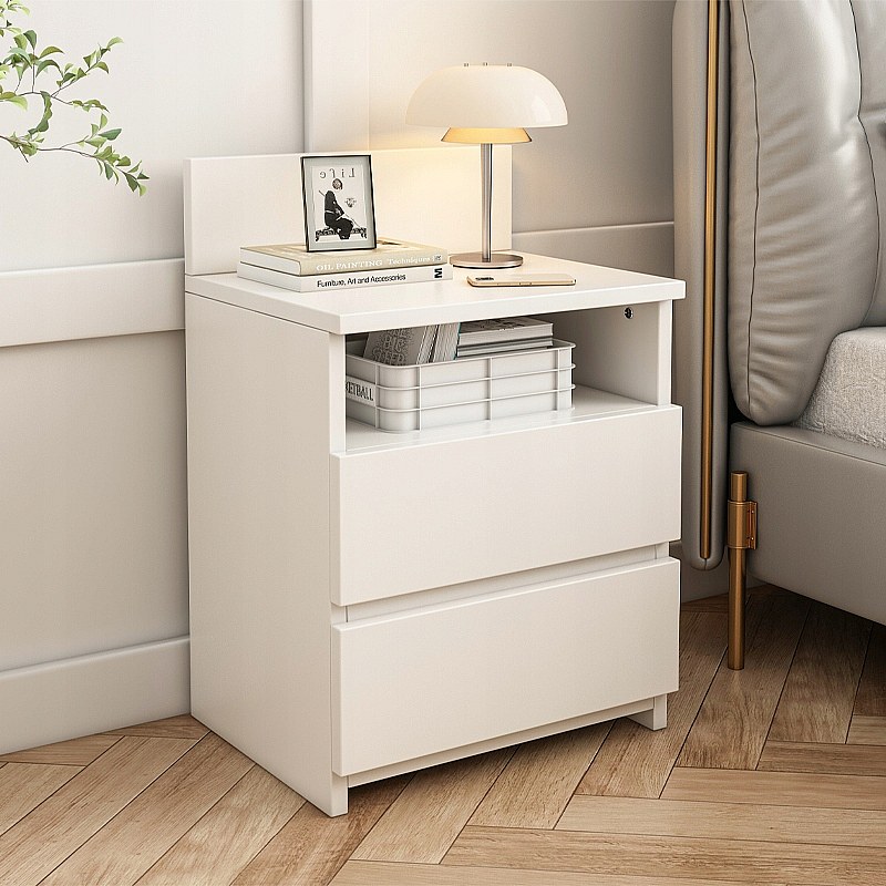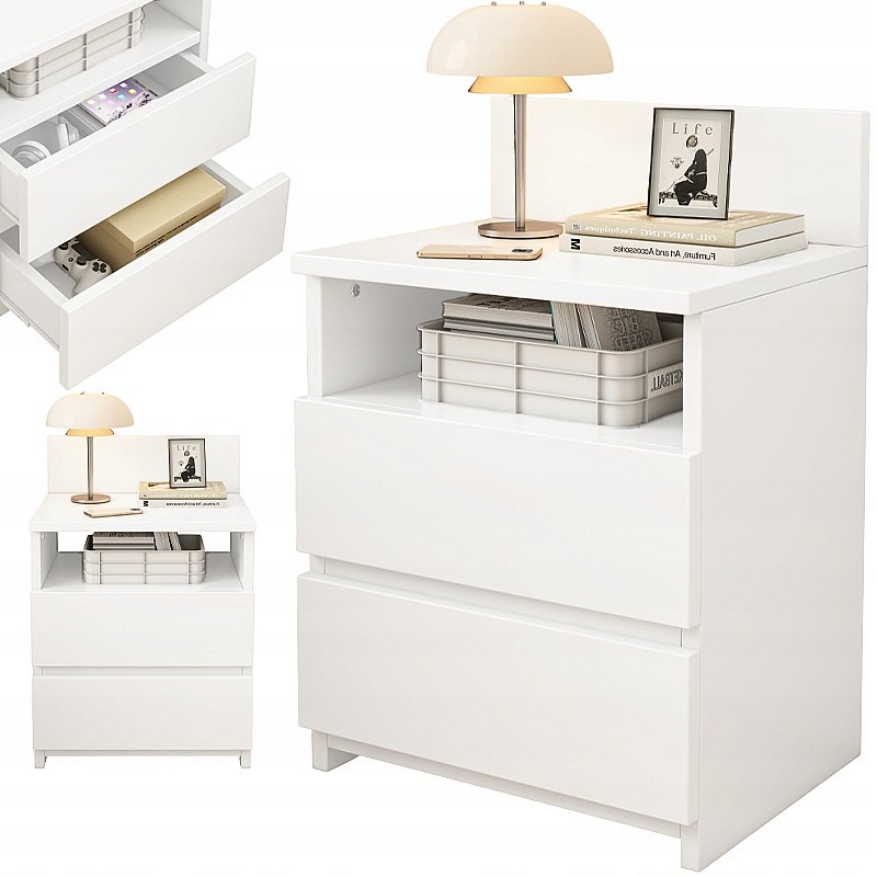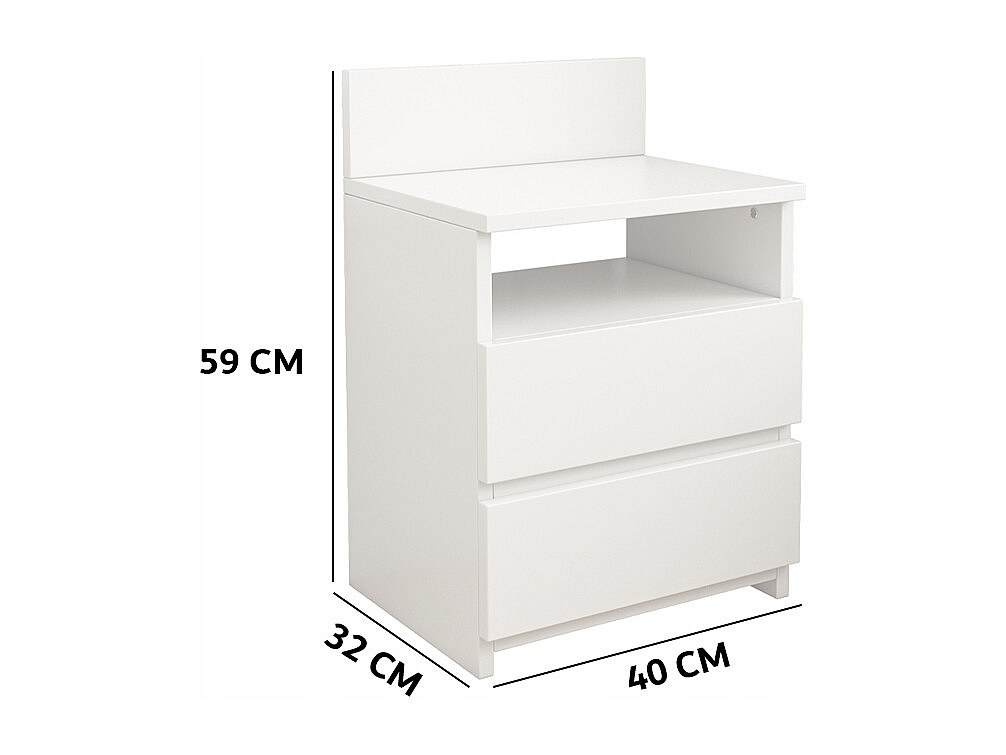 MÓDULO DE CABEÇA DE CAMA MESA DE QUARTO CÓMODA 2 GAVETAS BRANCA LOFT MODERNA 40 CM