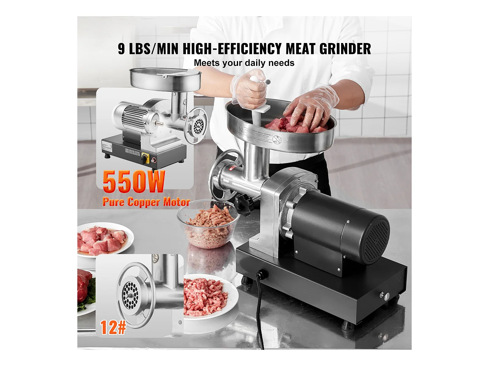 Moedor de Carne SucceBuy Elétrico Comercial 4kg/min Máquina de Salsichas Cozinha, Projetado para Restaurantes e Açougues com Alto Desempenho