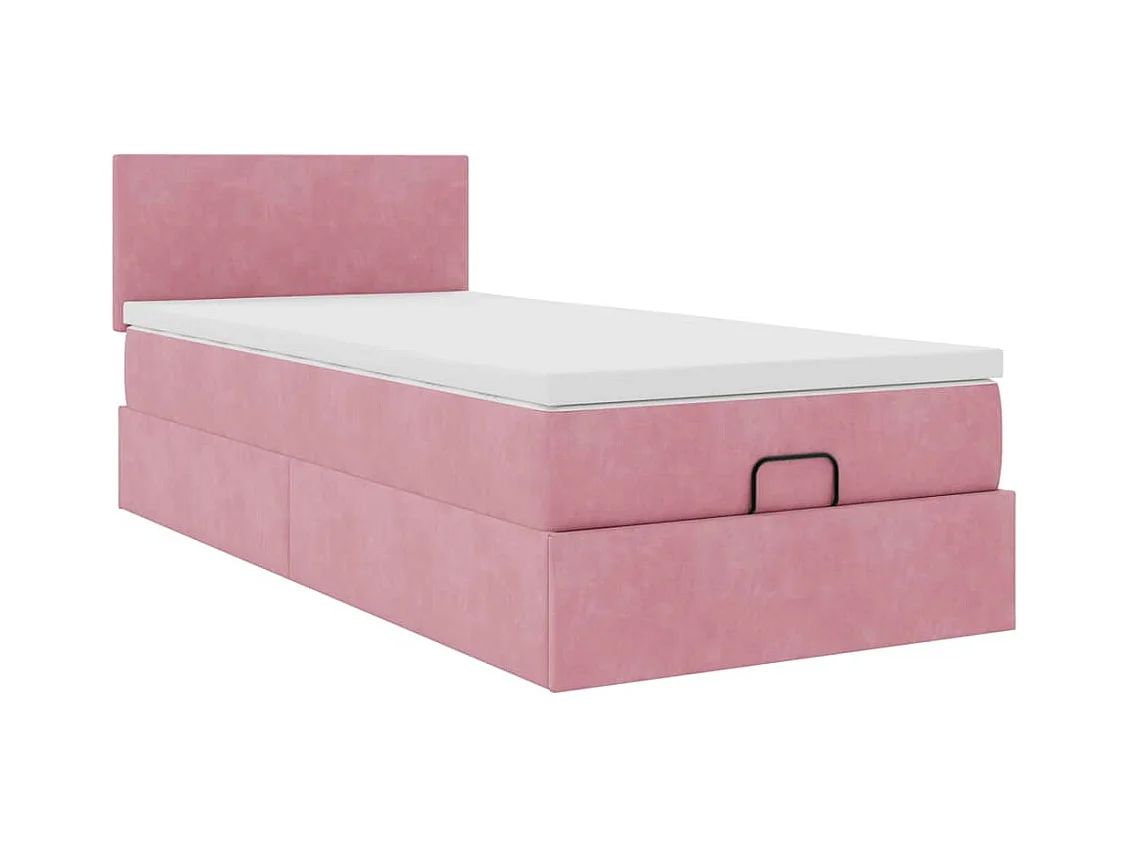 Otomano Bed Frame No Colchão Rosa 100x200 cm Veludo
