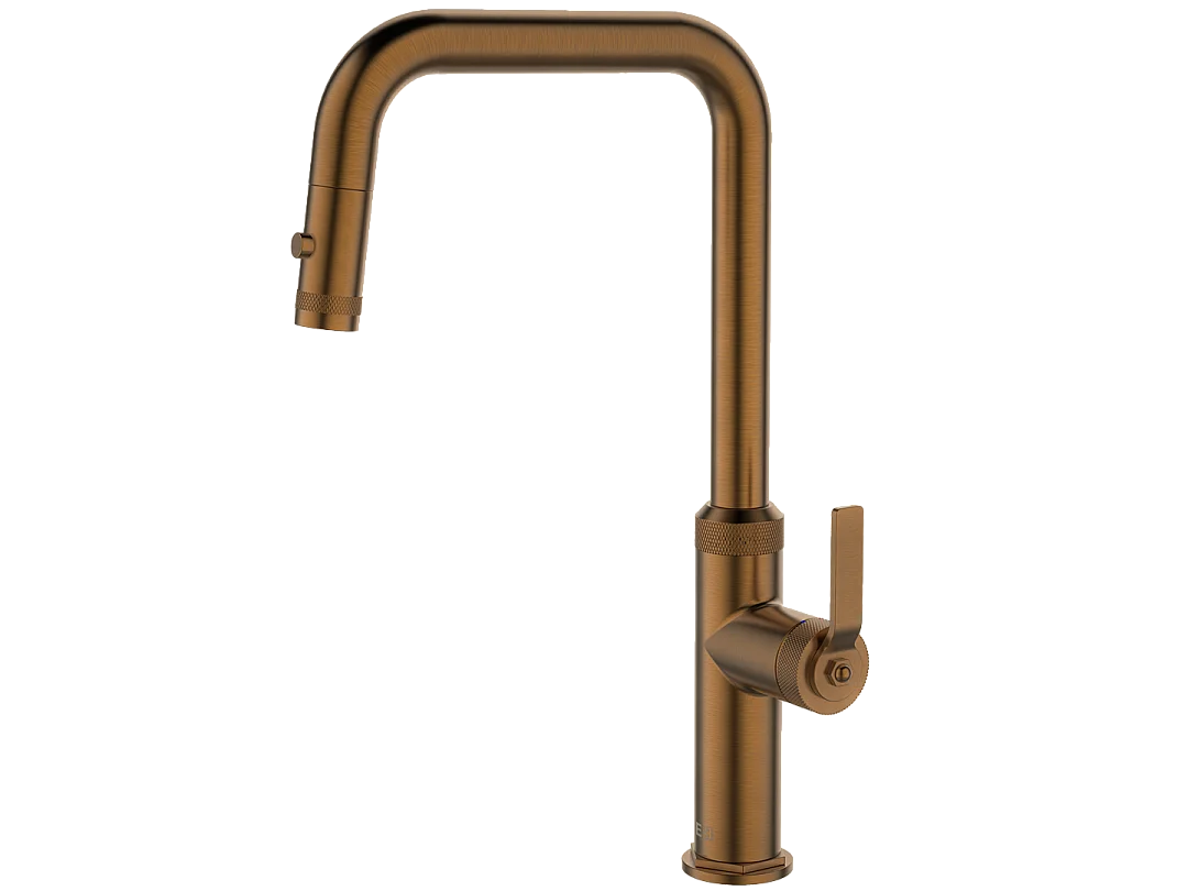 Molette Misturadora de lavatório com chuveiro de mão extraível em cobre escovado Essebagno