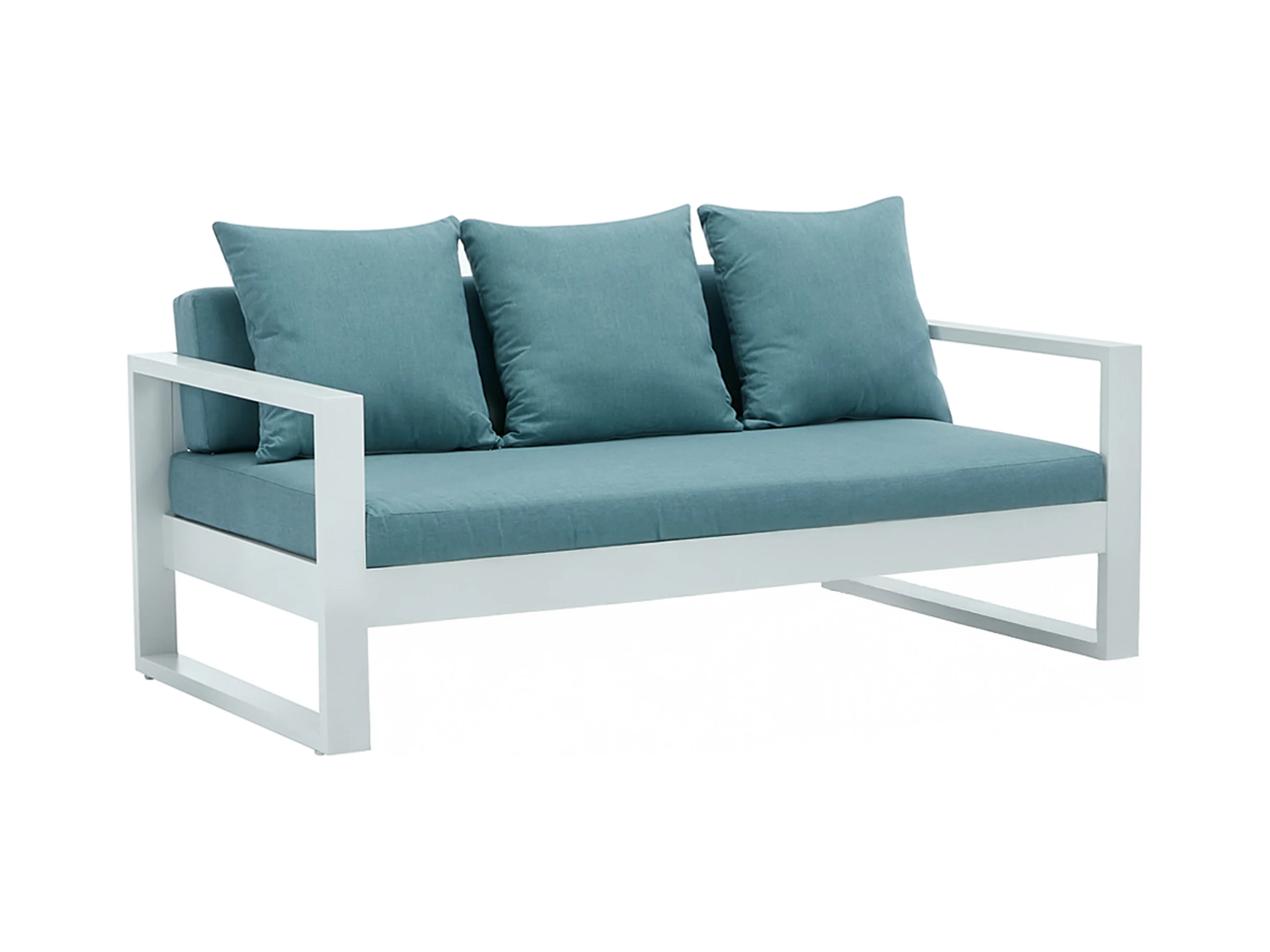 Sofá de jardim 3 lugares em alumínio branco com almofadas azuis - MOLOKAI de MYLIA