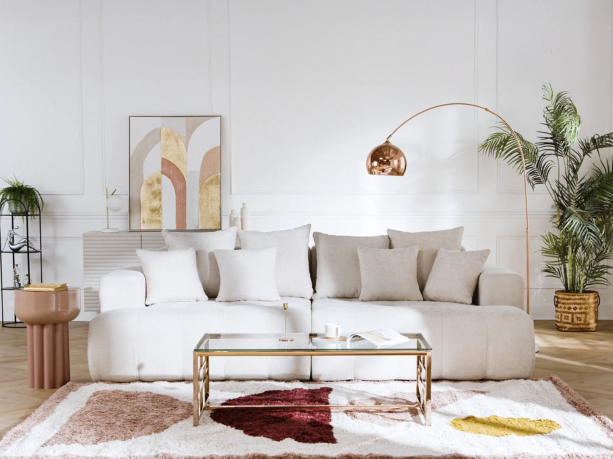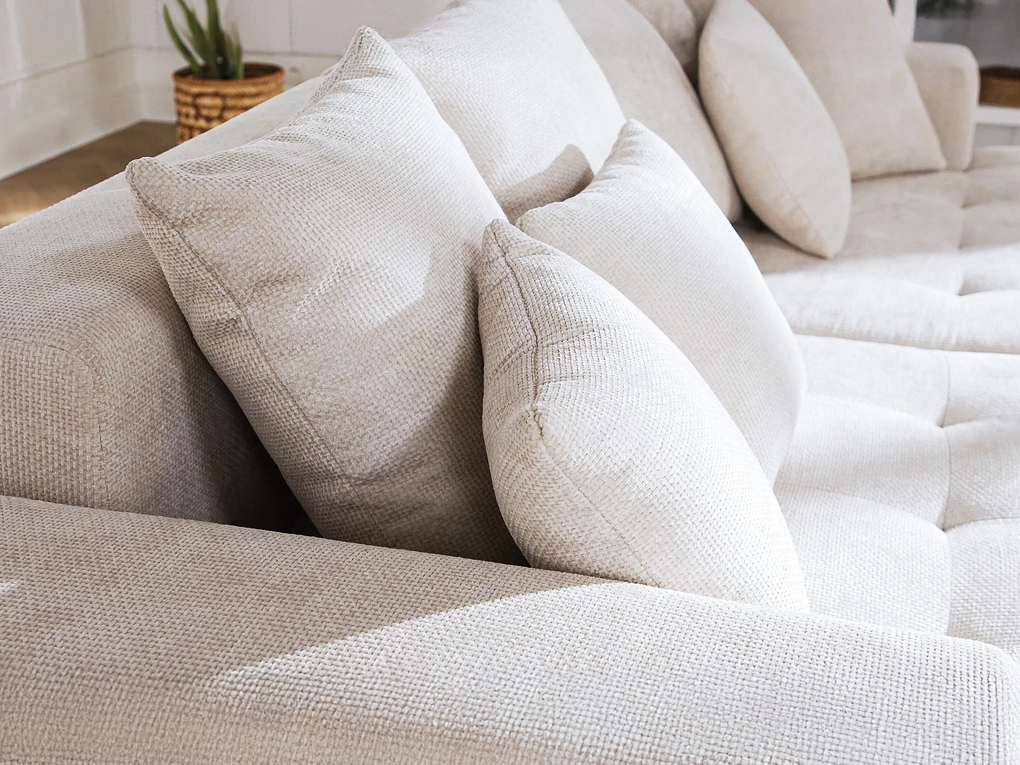 Sofá de 4 lugares conforto assento profundo em tecido texturizado bege - MOTINO