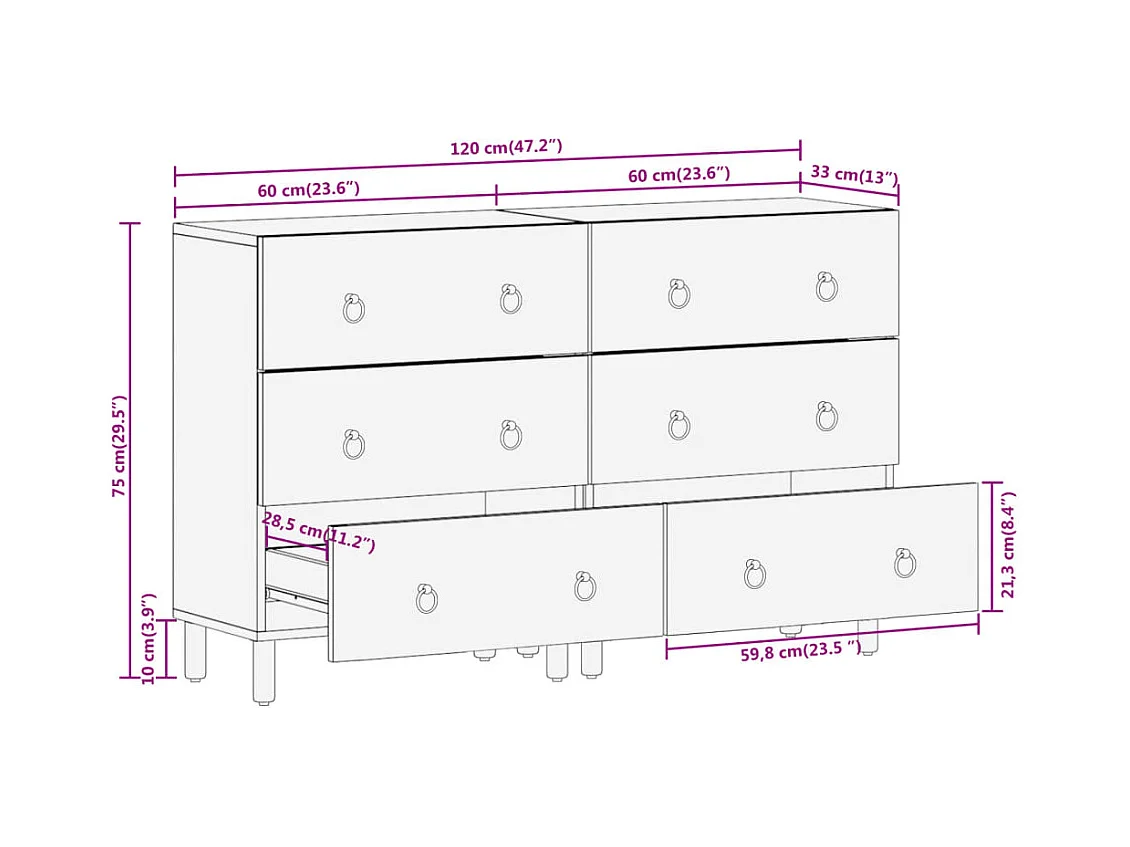 Aparador c/ 2 portas 60x33x75 cm madeira de mangueira maciça