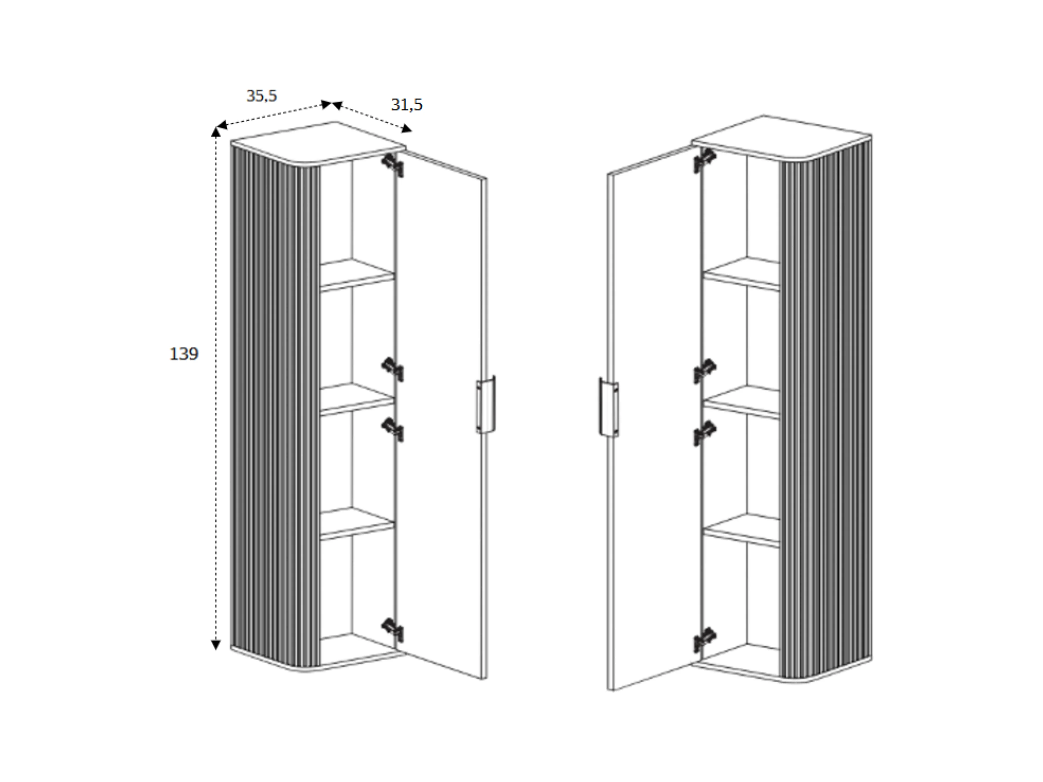 Armário de banheiro, Caxemira, puxador prateado, 35 x 136 x 27 cm