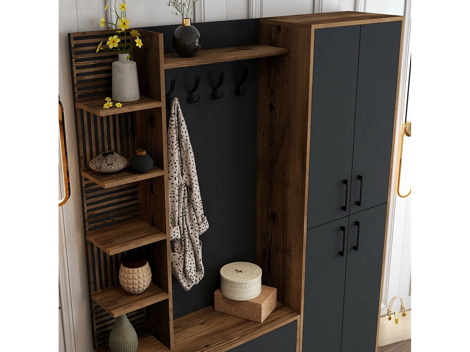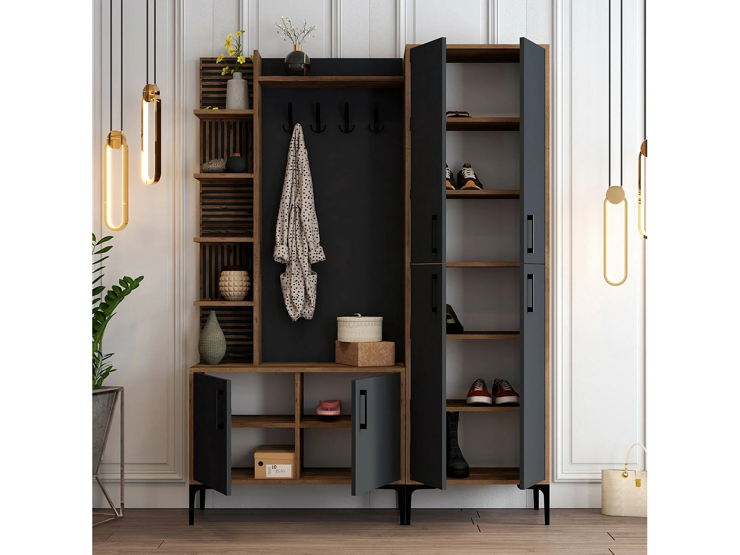 Móveis de entrada Dradunovi, Cabide de entrada, Composição do átrio, Consola de arrumação multifuncional, 150x35 h200 cm, Nogueira e Antracite