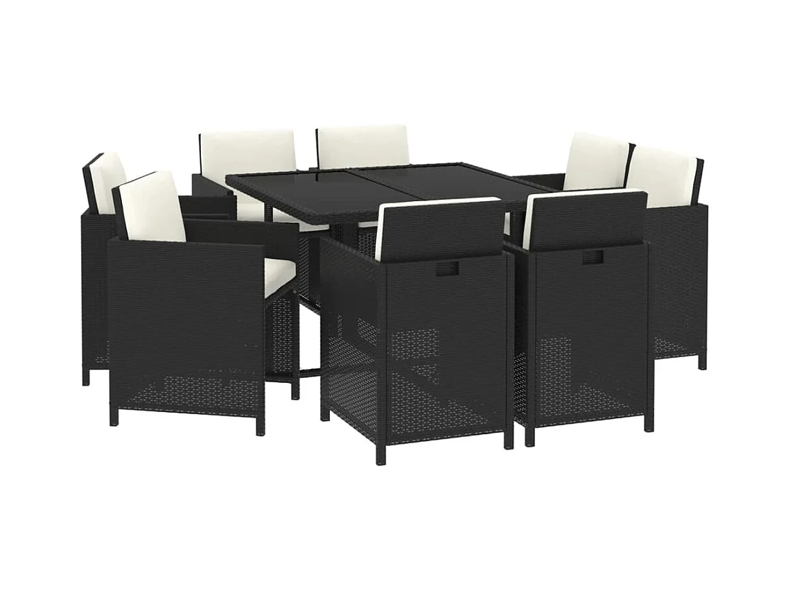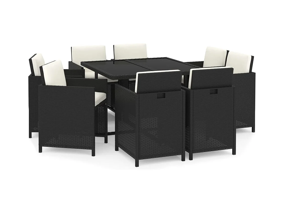 Móveis de jantar de jardim de 9 peças e almofadas de resina tecida preta 02_0014833