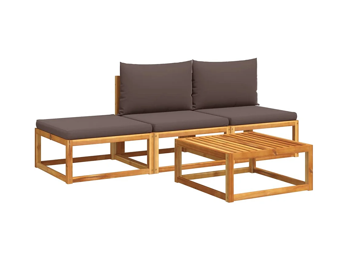 Móveis de jardim com 3 almofadas em madeira de acácia maciça