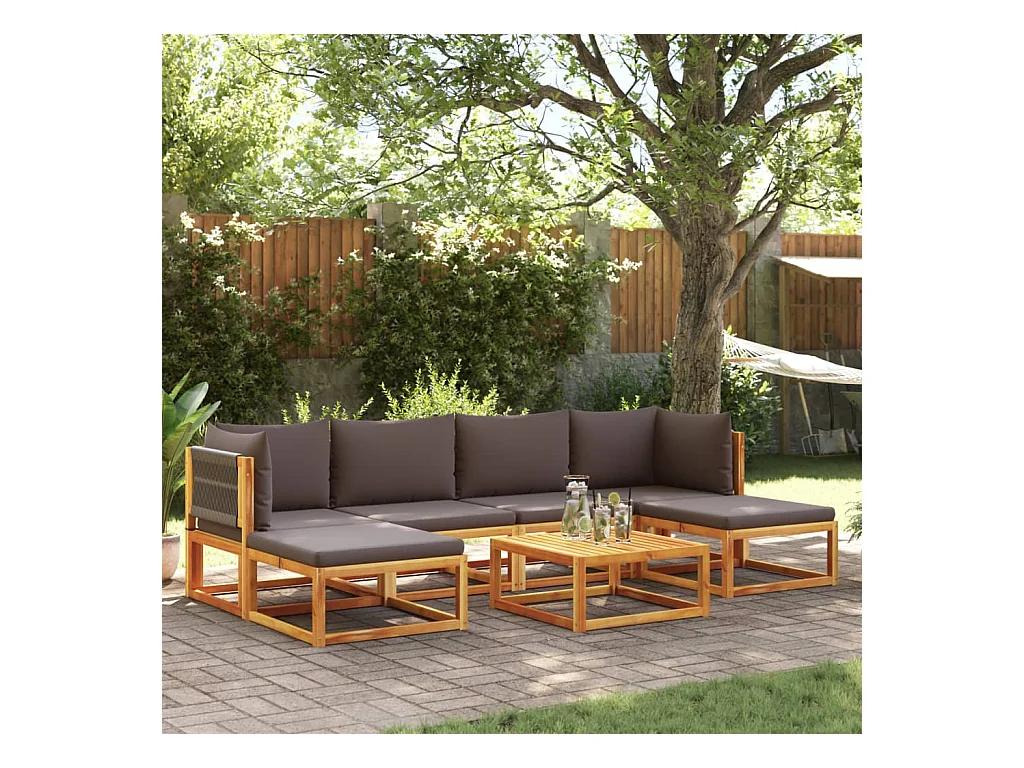 Móveis de jardim com almofadas 7 unidades de madeira maciça de acácia