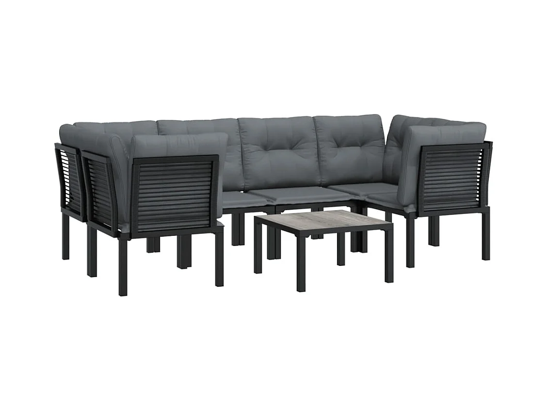 Móveis de jardim móveis de exterior Conjunto de móveis de 6 peças com almofadas pretas em resina tecida 02_0016843