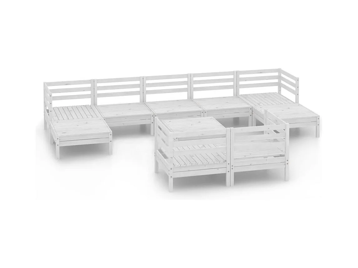 Móveis de jardim móveis de exterior conjunto de móveis 10 peças madeira de pinho maciça branca 02_0015195