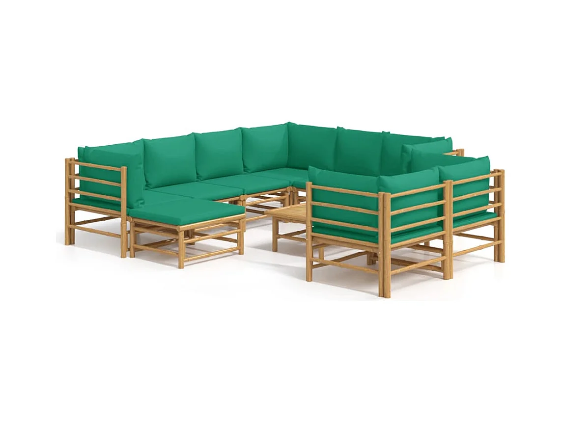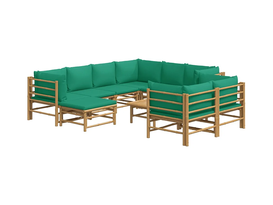 Móveis de jardim móveis de exterior Conjunto de móveis de 10 peças com almofadas de bambu verde 02_0015191