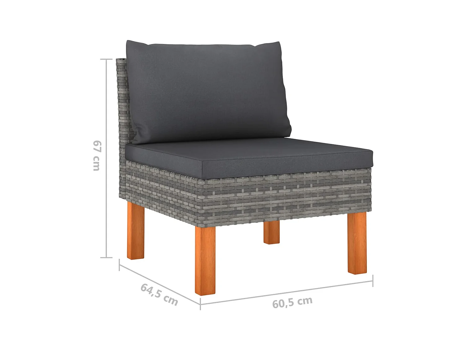 10 pcs conjunto lounge de jardim c/ almofadões vime PE cinzento
