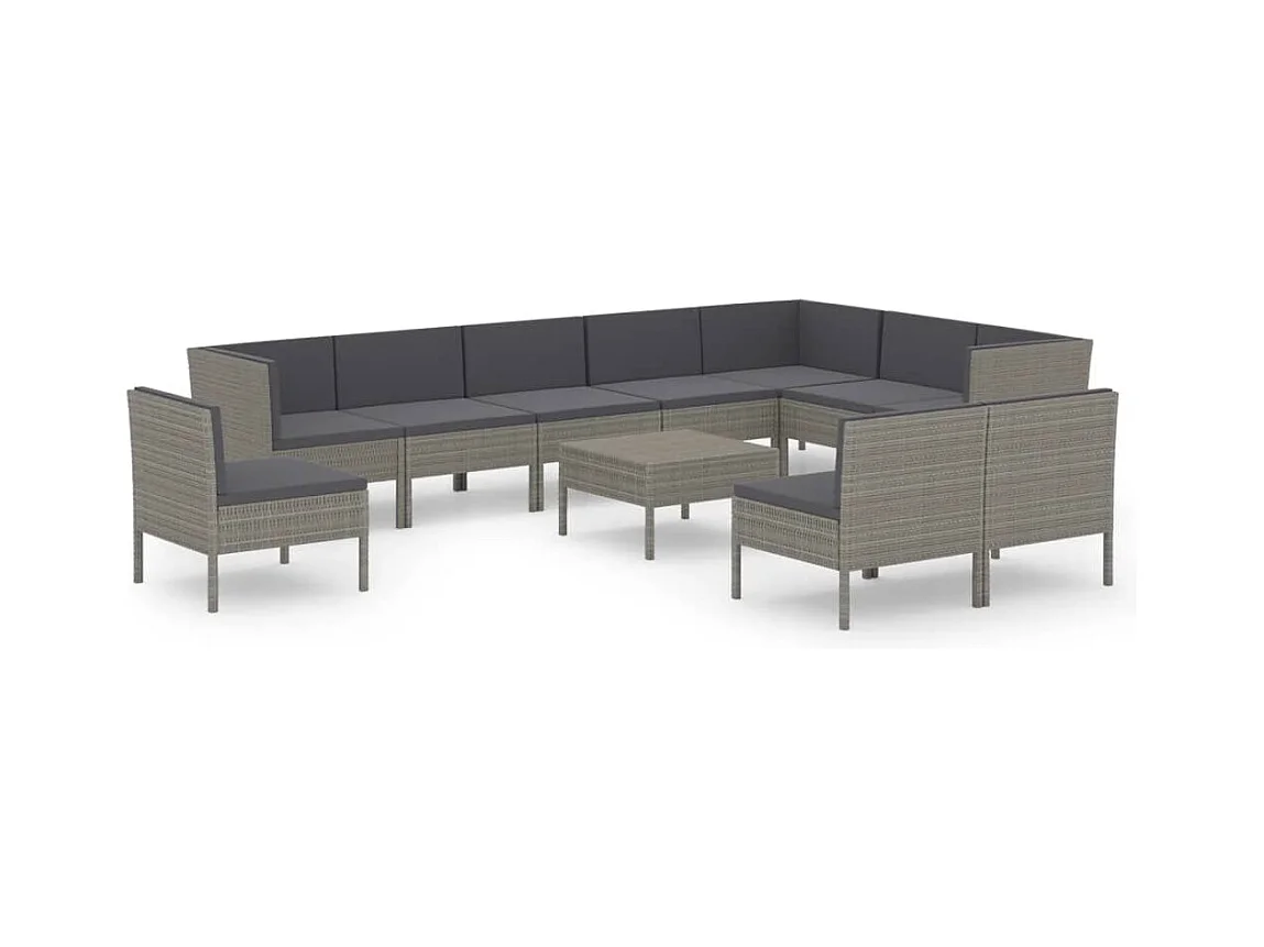 11 pcs conjunto sofás de jardim c/ almofadões vime PE cinzento