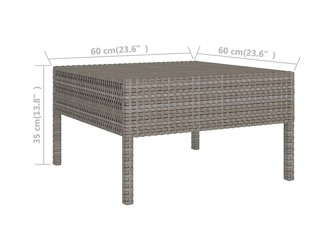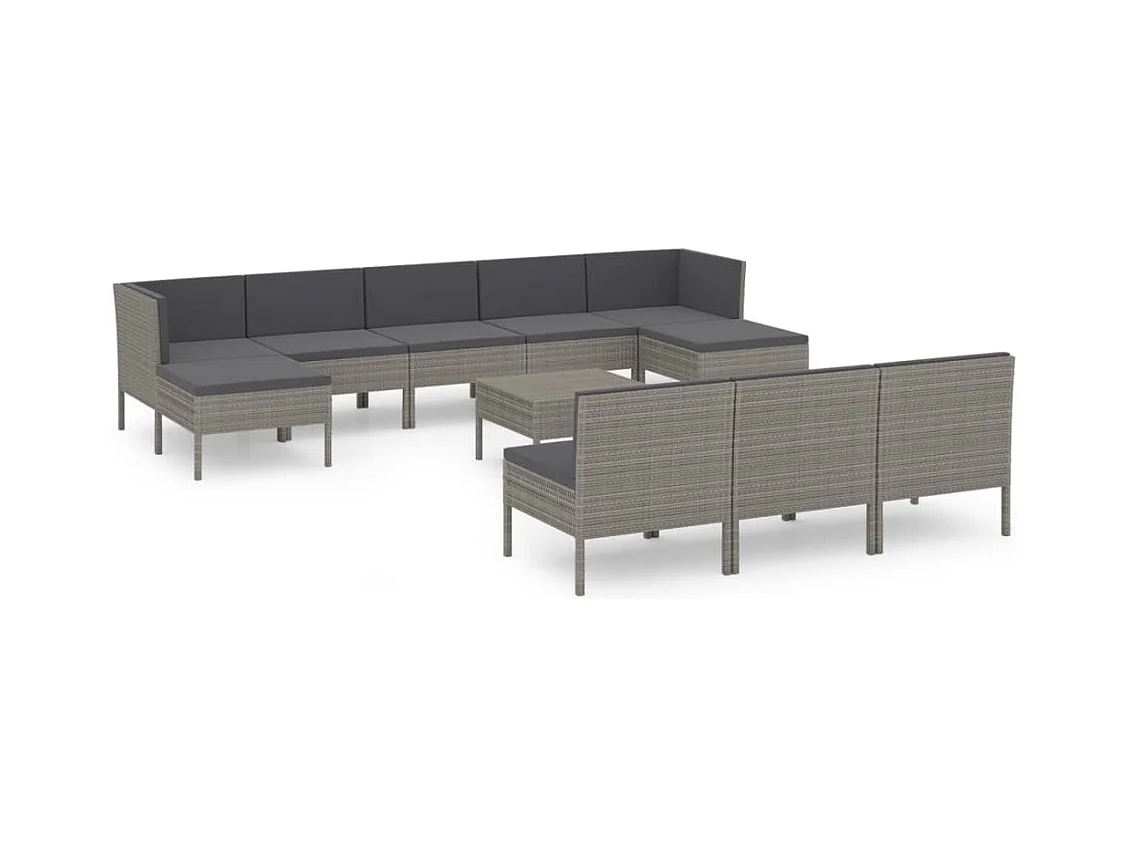 10 pcs conjunto lounge de jardim c/ almofadões vime PE cinzento