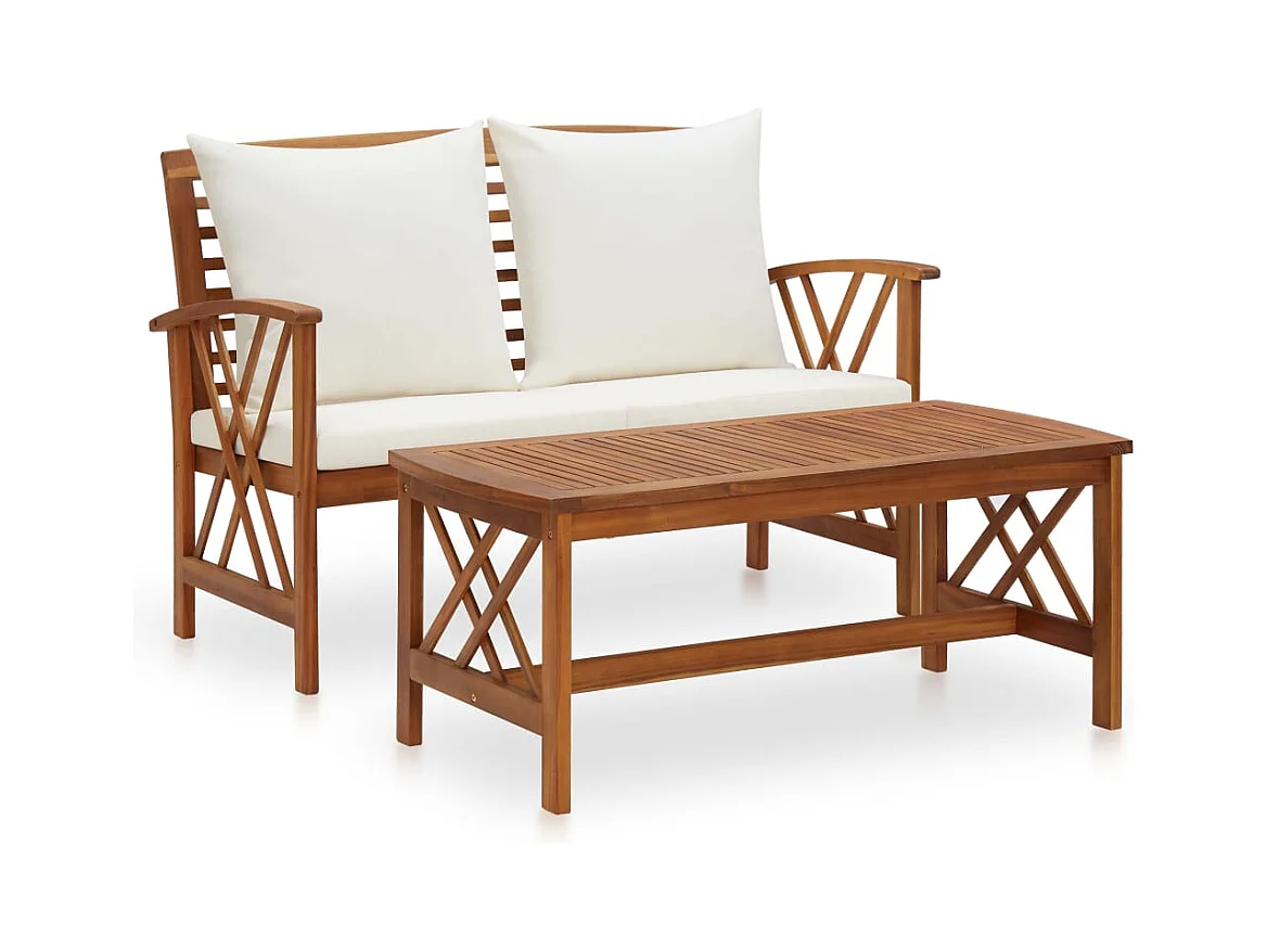 Móveis de jardim móveis de exterior Conjunto de móveis de 2 peças com almofadas madeira de acácia maciça 02_0015882