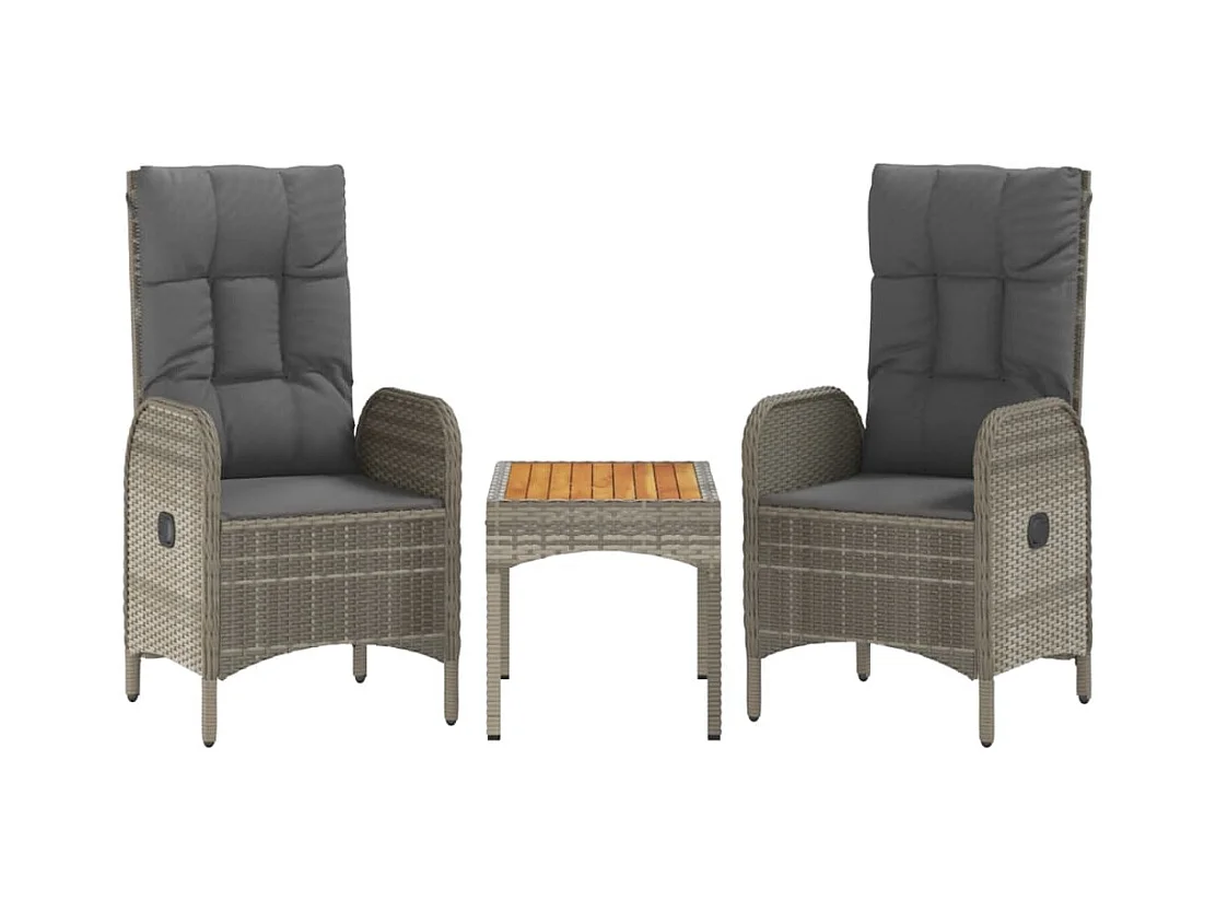 Móveis de jardim móveis de exterior Conjunto de móveis de 3 peças com almofadas de resina tecida cinza 02_0015994